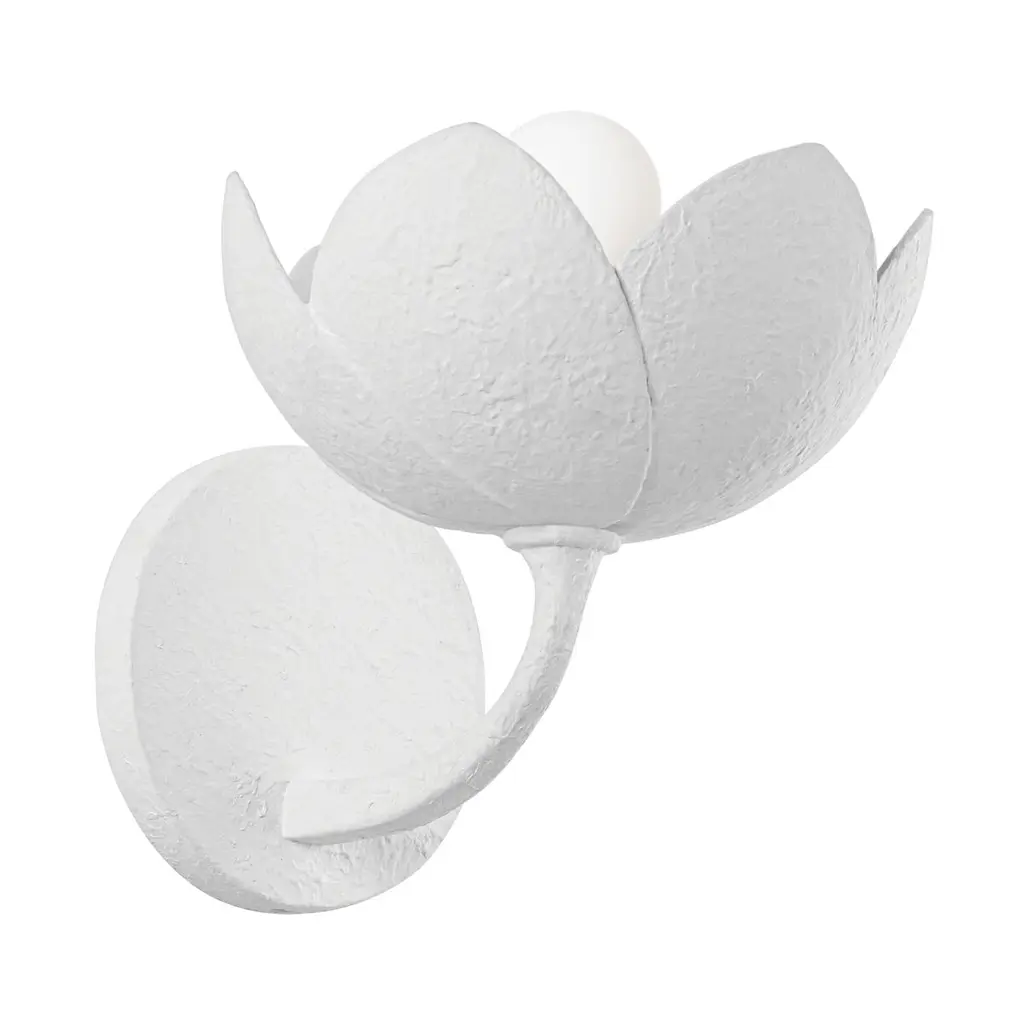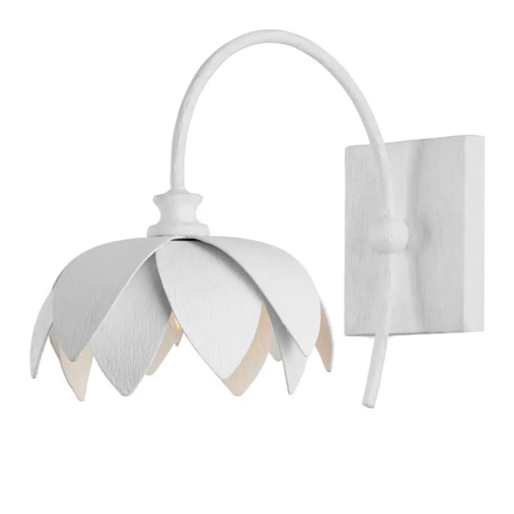 A fresh take on a botanic motif, the Arcata family features sculptural, romantic silhouettes with highly tactile, hand-worked finishes. The gentle sweeping arms transition from square to round, creating a dynamic look that complements the floral forms. Arcata is available as a 1-light sconce and 6 or 8-light chandeliers with the choice between contemporary Gesso White or a luxurious Vintage Gold Leaf finish.