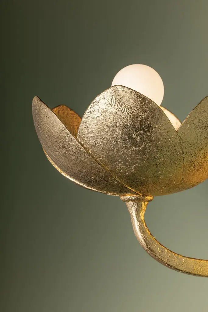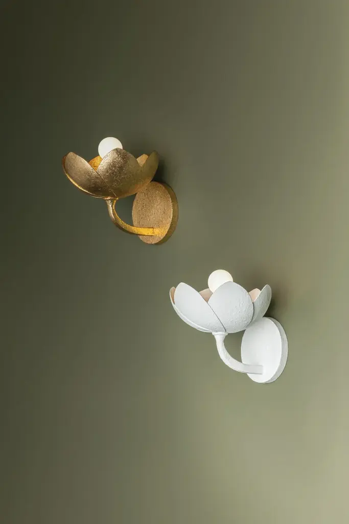 A fresh take on a botanic motif, the Arcata family features sculptural, romantic silhouettes with highly tactile, hand-worked finishes. The gentle sweeping arms transition from square to round, creating a dynamic look that complements the floral forms. Arcata is available as a 1-light sconce and 6 or 8-light chandeliers with the choice between contemporary Gesso White or a luxurious Vintage Gold Leaf finish.