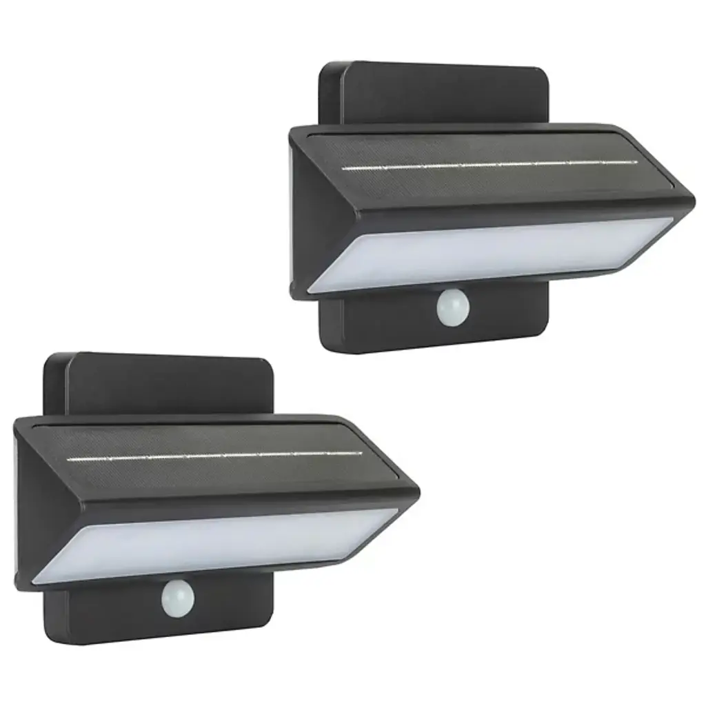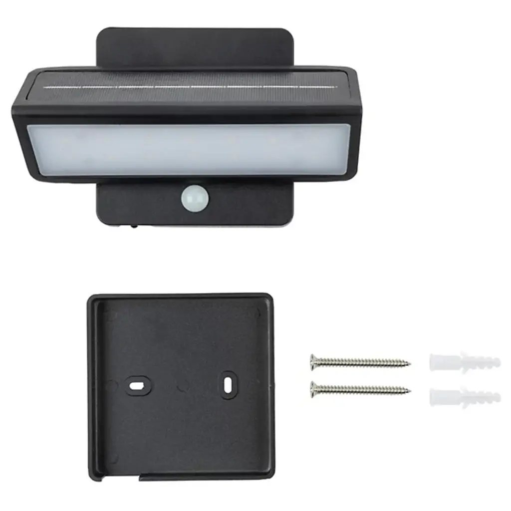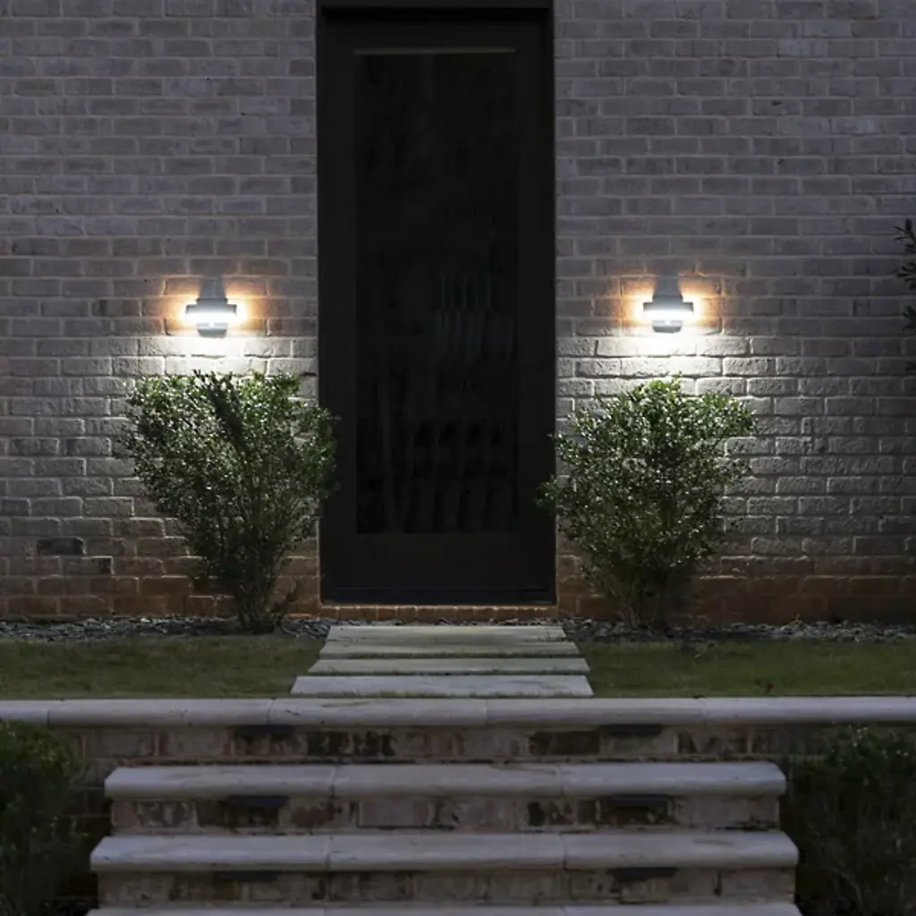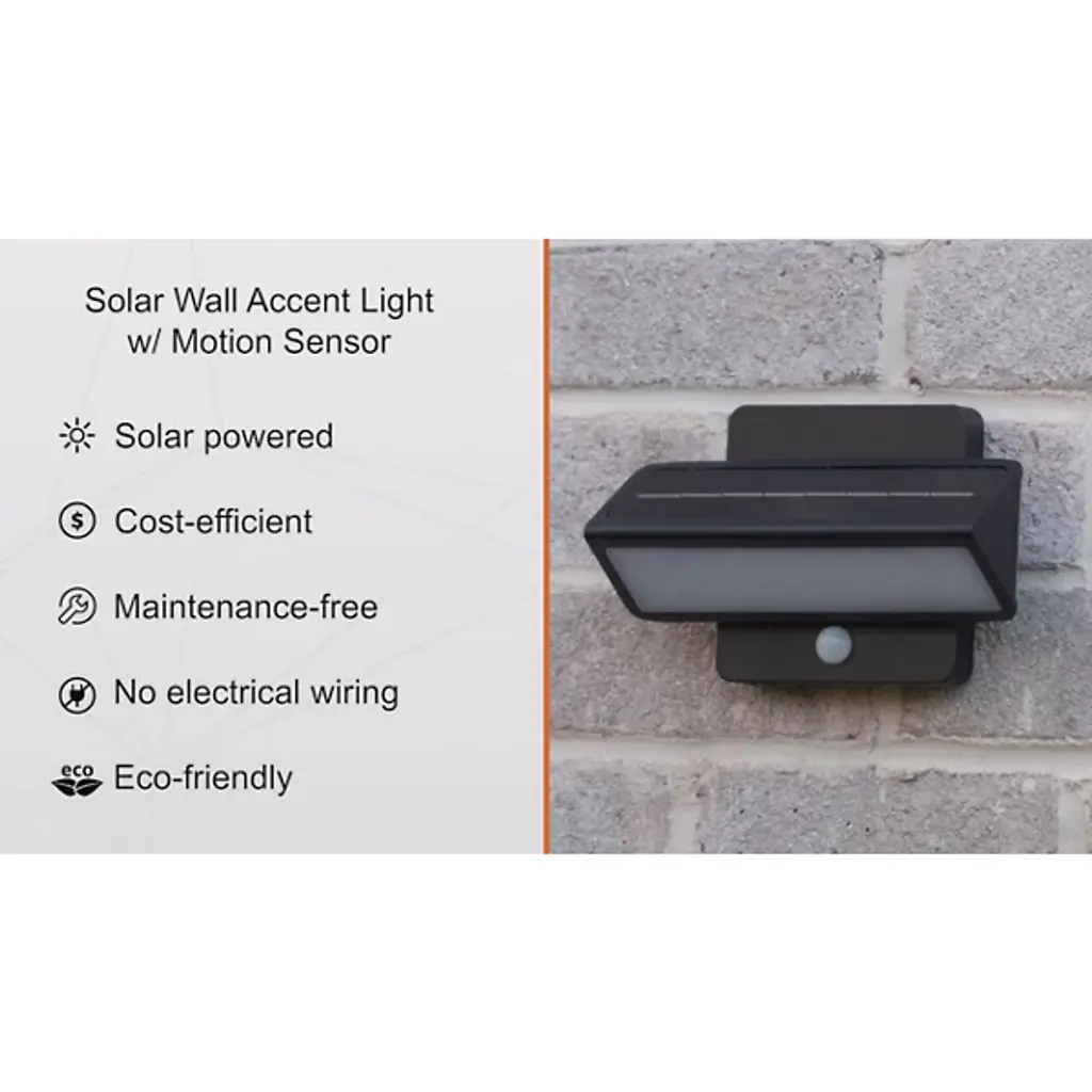 Illuminate your outdoor spaces with the Architectural Solar LED Outdoor Wall Sconce from Gama Sonic, harnessing the sun's power for enhanced visibility, safety, and security around residential or commercial areas. Ideal for garages, doorways, sheds, and backyards, this solar wall light features a motion sensor for added security. The layered bright lights illuminate stairs, walkways, and walls, complemented by a warm white accent backlight that acts as a wall wash. Balancing contemporary style with a direct design that promises durability, this energy-efficient lighting solution offers up to 18 hours of usage, reducing household energy costs. Complete with a High/Off/Low switch for brightness options, it is at once stylish and efficient, offering years of easy-installing illumination to your outdoor spaces.