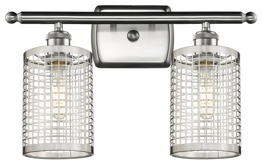 Archway 2 Light 15.5 Inch Brushed Nickel Bath Light Wall Light In Square With Flat Rim