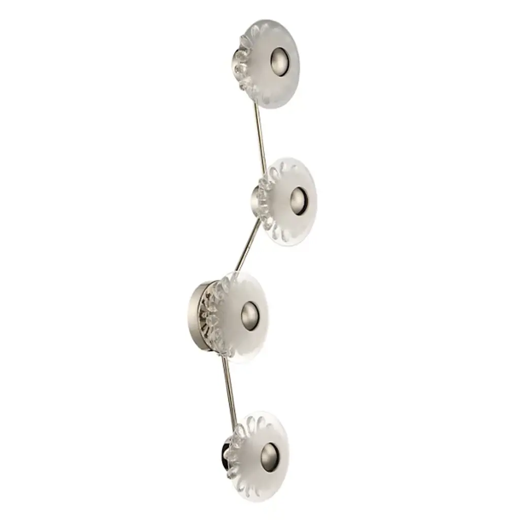 Suspending gracefully from a circular wall plate via a slim yet sturdy cable, the Aria LED Wall Sconce by Fine Art Handcrafted Lighting offers adjustable brilliance inspired by the elegance of necklace charms. Each instance is made with focused attention to detail, incorporating refined metal studded with opulent faceted optic crystal charms that gleam like precious gems, drawing the eye with their luminous allure. Whether you prefer the soft, reflective glow of light bouncing off the crystal or the practical illumination it provides, integrated LED lights fulfill your lighting needs with sophistication and strength. With its blend of Artisanal Modern and Transitional styles, this sconce adds a touch of timeless elegance to any space.