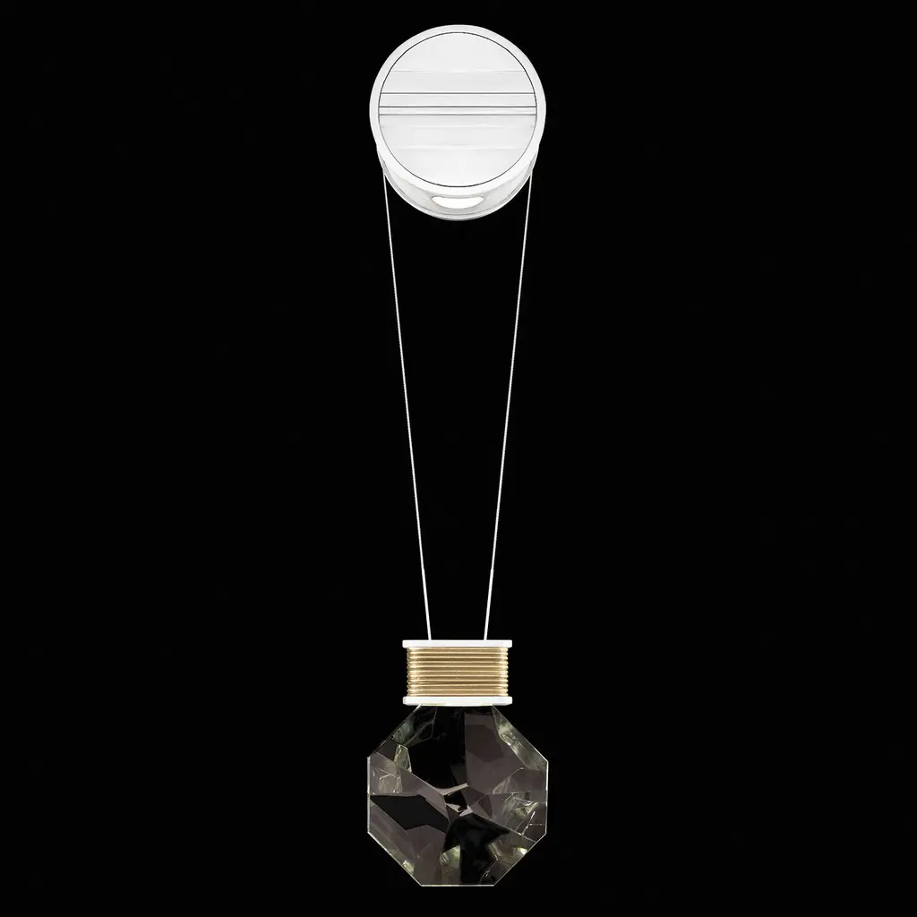 Crafted with finesse, the Aria Octagon LED Wall Sconce from Fine Art Handcrafted Lighting suspends elegantly from a circular wall plate via a slender yet robust cable, offering adjustable height inspired by the refinement of necklace charms. Each piece is meticulously crafted, featuring polished metal adorned with an octagonal opulent faceted optic crystal charm that sparkles like precious jewels, captivating attention with its radiant allure. Whether you seek the gentle, reflective glow of light refracting through the crystal or the functional brightness it provides, the integrated LED lights meet your lighting preferences with sophistication and durability. Blending elements of Artisanal Modern and Transitional styles, this sconce infuses any space with a timeless touch of elegance.