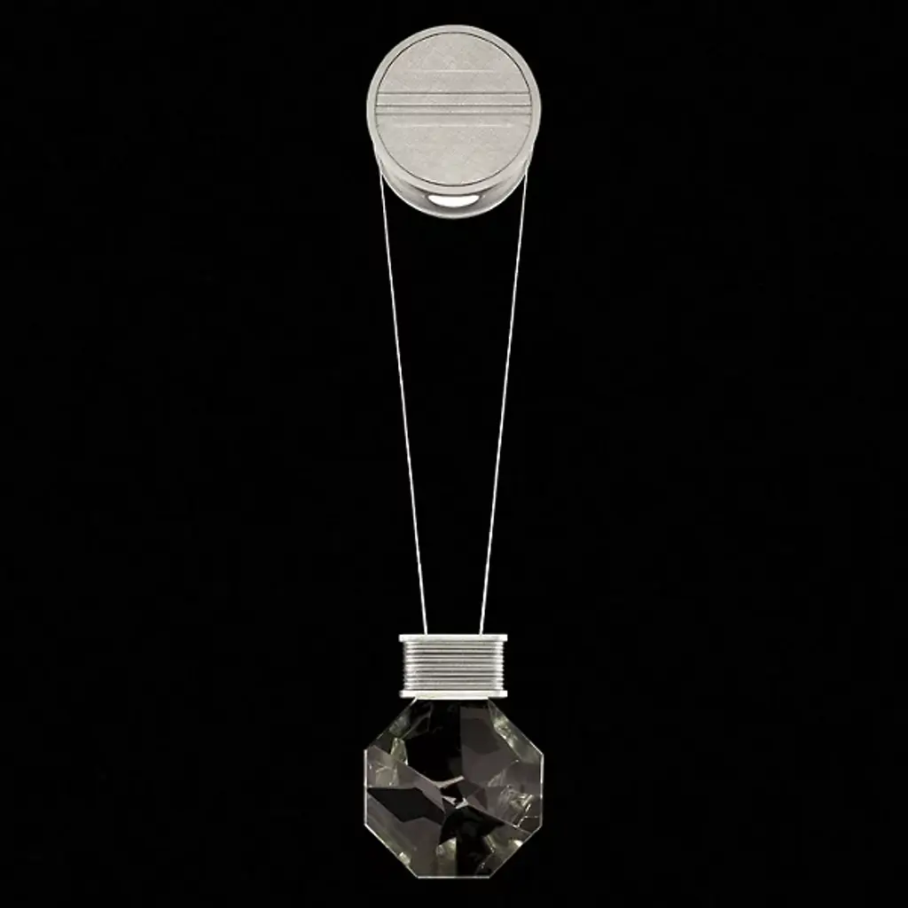 Crafted with finesse, the Aria Octagon LED Wall Sconce from Fine Art Handcrafted Lighting suspends elegantly from a circular wall plate via a slender yet robust cable, offering adjustable height inspired by the refinement of necklace charms. Each piece is meticulously crafted, featuring polished metal adorned with an octagonal opulent faceted optic crystal charm that sparkles like precious jewels, captivating attention with its radiant allure. Whether you seek the gentle, reflective glow of light refracting through the crystal or the functional brightness it provides, the integrated LED lights meet your lighting preferences with sophistication and durability. Blending elements of Artisanal Modern and Transitional styles, this sconce infuses any space with a timeless touch of elegance.