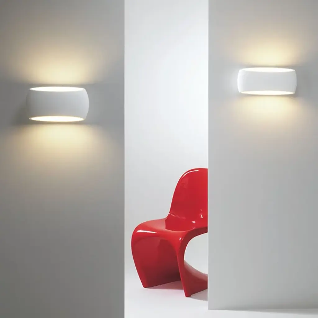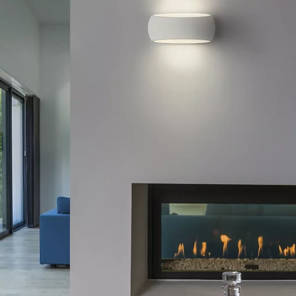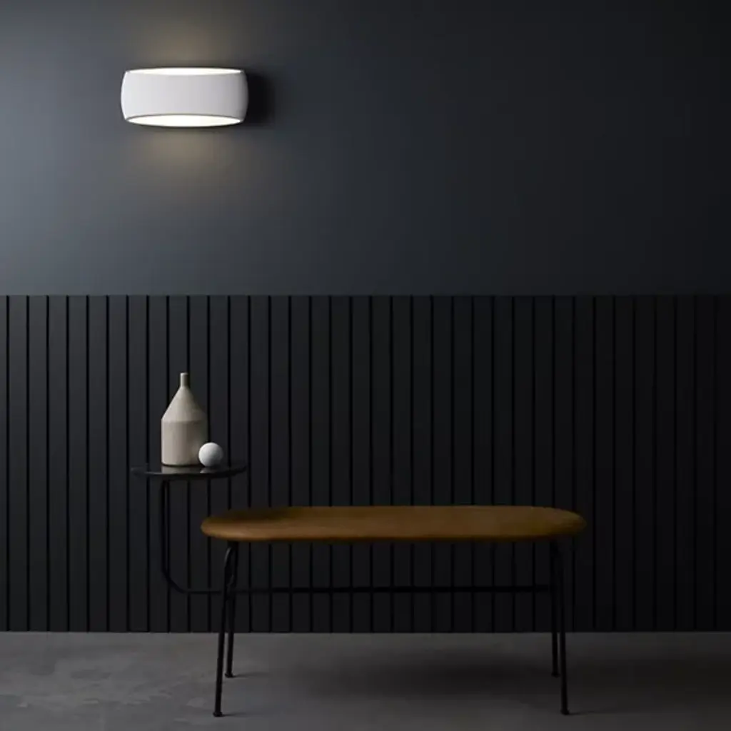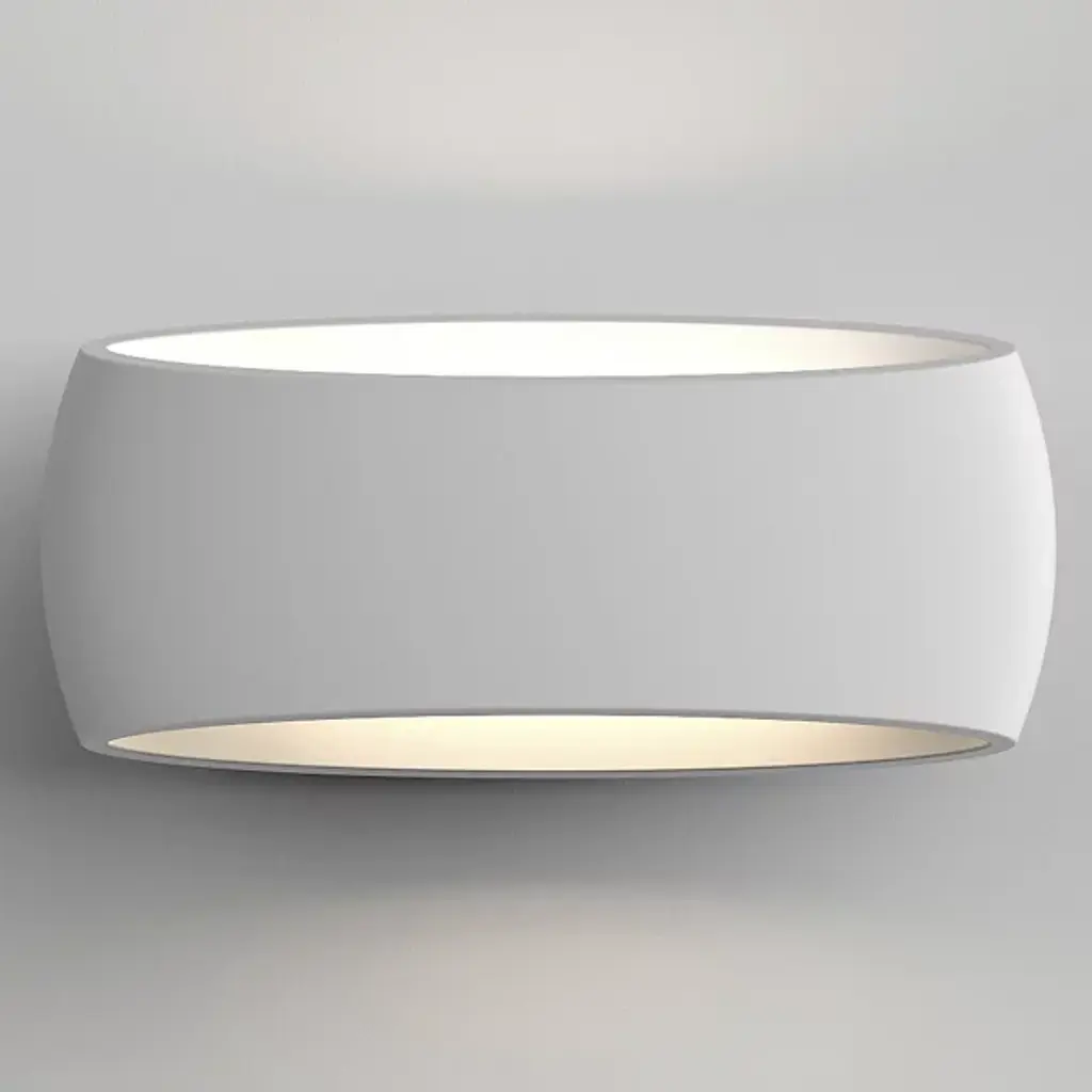 Add a calm presence to the walls of your modern home with the Aria Wall Sconce from Astro Lighting. Mounting directly to the wall, this piece is made of plaster formed into a wide and graceful bowl shape. Openings in the top and bottom of the piece allow the light from the single LED within to escape in a gentle manner. The light washes over the wall in a soft glow before spreading throughout the room.