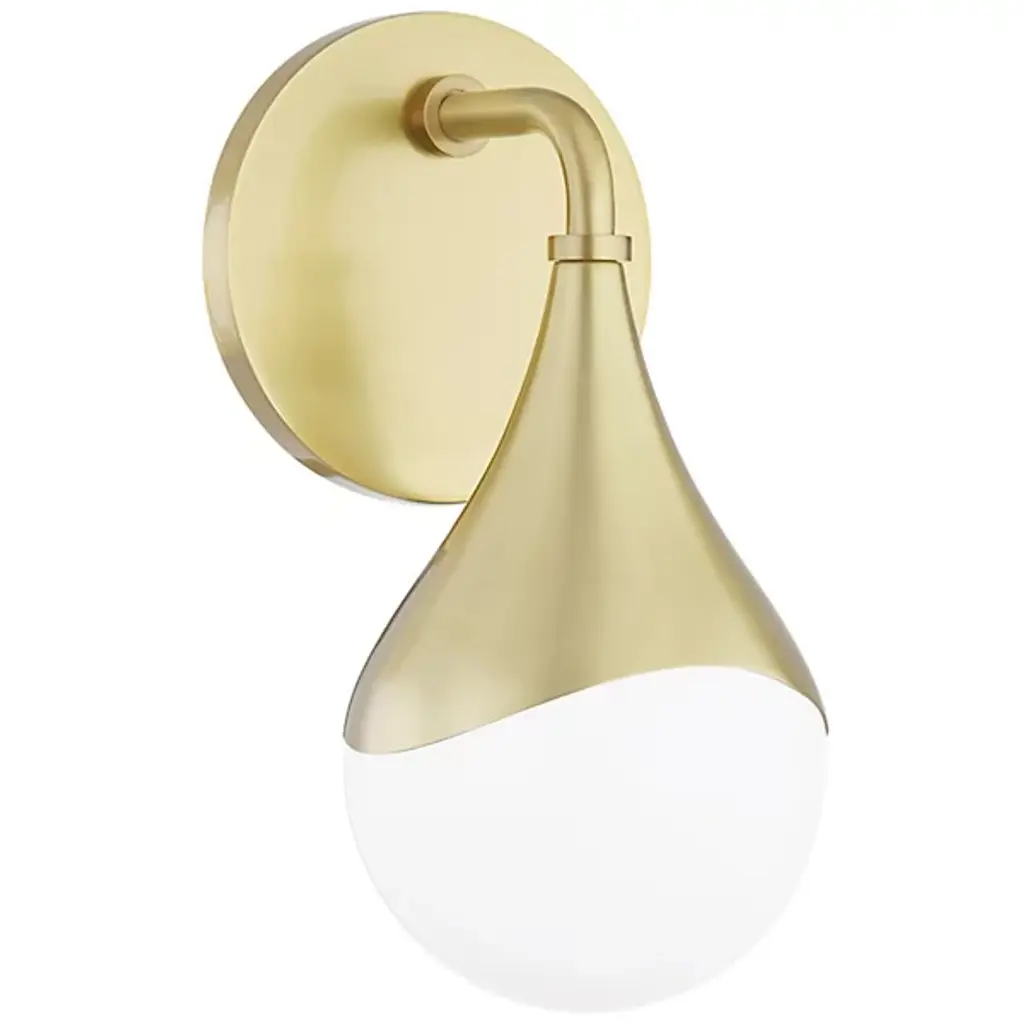 Elegant, seductive, inspired. The Ariana Wall Sconce from Mitzi – Hudson Valley Lighting creates a lasting impression with its charming light and memorable teardrop form. Frame your entryways or accent your living spaces with this piece as it sits over your wall in a compact circular backplate. The clean metal construction makes the piece a fit in the refined modern home. With a subtle bend like a spout, its slim arm presents you with a delightful teardrop form. A contoured metal lamp holder and a globe glass shade combine to create the familiar silhouette with a two-toned look. A flip of the switch creates a stream of soft ambient light and conjures up a well-defined silhouette.