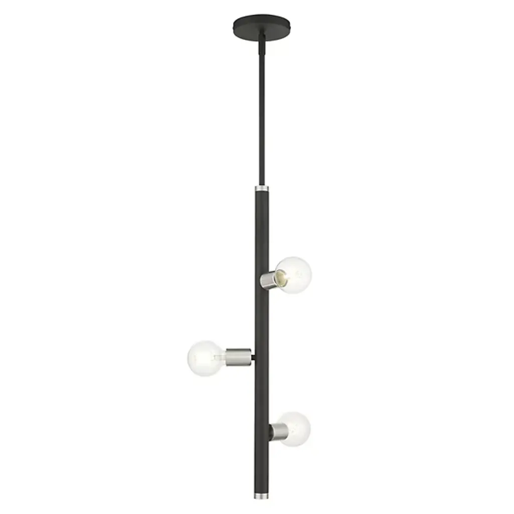 Precision play takes hold in Ariel's sleek form. A torch light for the modern age, Ariel is tried and true, versatile enough to elevate any space. Clear glass shades allow metal finishes to shine, available in aged brass, polished nickel, and soft black. Exposed tubular bulbs elongate the style, creating rays of light in multiple directions. Available as a wall sconce, chandelier, pendant, and linear light.