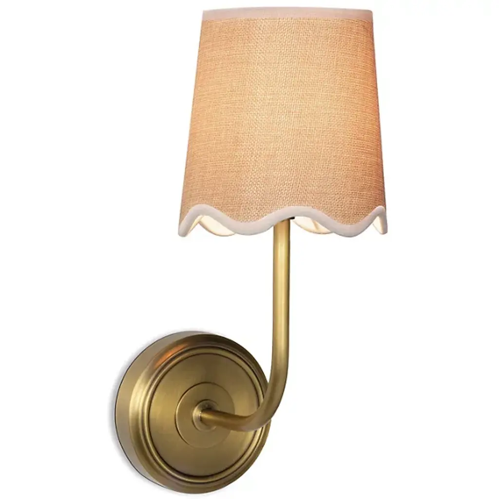 Unfussy yet refined. The Ariel Wall Sconce is a transitional piece of design from Regina Andrew, a creative force based in Detroit. A simple swooping arm in an elegant finish grows from the circular mounting plate to hold a scalloped linen lamp shade. The composition is a perfect mixture of rustic modern elements and nautical vibes. Pieces like these could easily illuminate spaces in a beach house or a space that needs a deeper essence of coastal décor.
