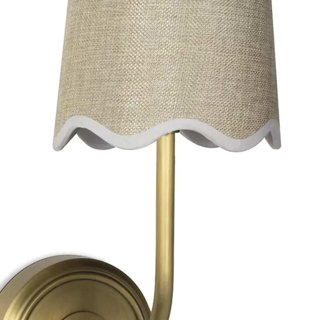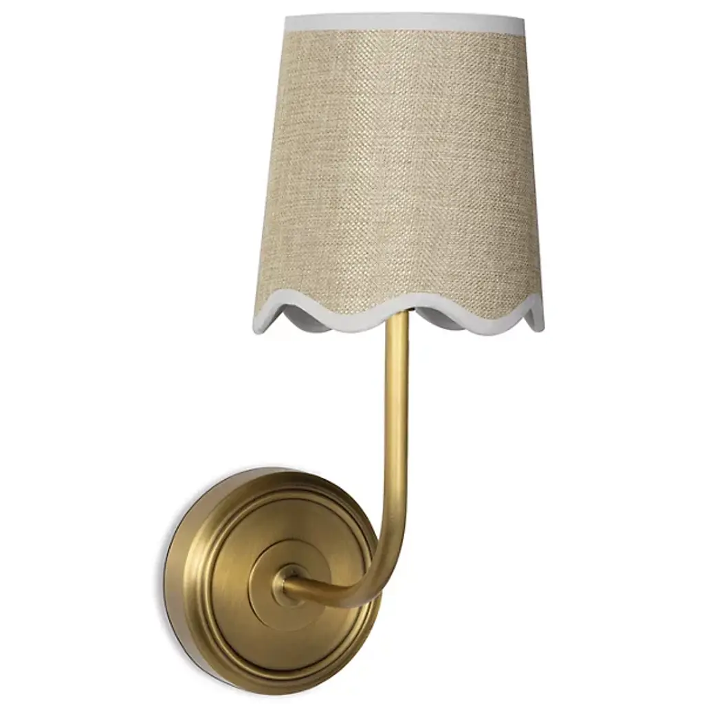 Unfussy yet refined. The Ariel Wall Sconce is a transitional piece of design from Regina Andrew, a creative force based in Detroit. A simple swooping arm in an elegant finish grows from the circular mounting plate to hold a scalloped linen lamp shade. The composition is a perfect mixture of rustic modern elements and nautical vibes. Pieces like these could easily illuminate spaces in a beach house or a space that needs a deeper essence of coastal décor.