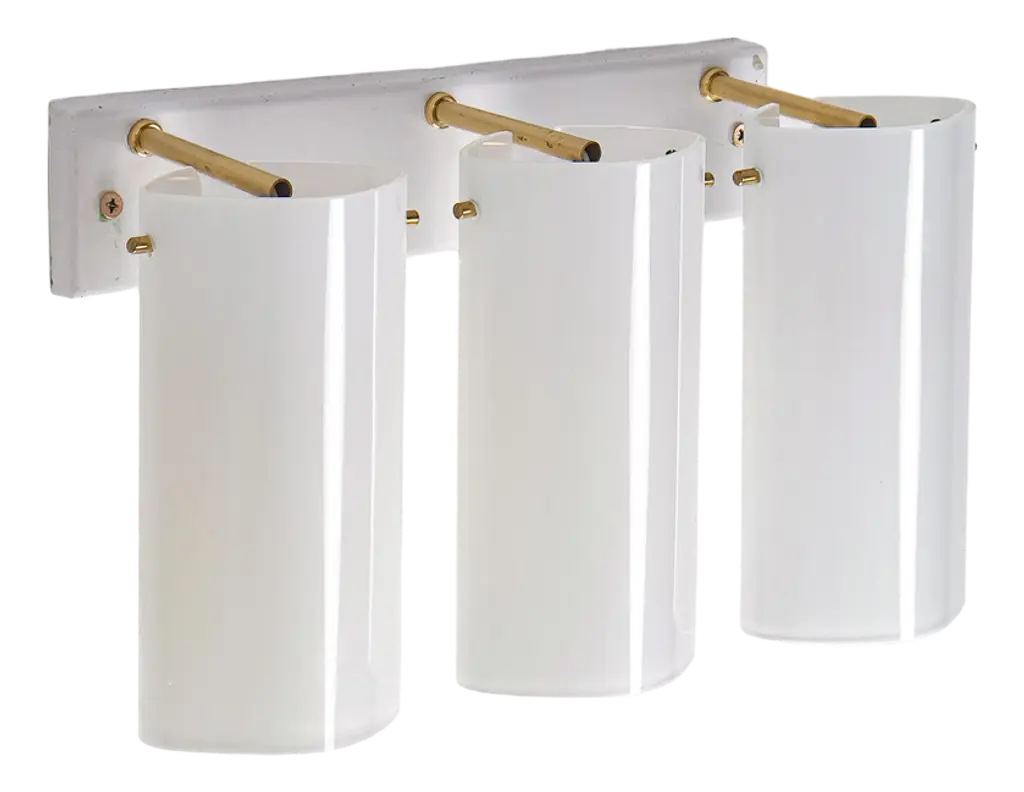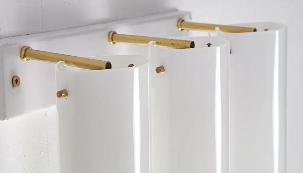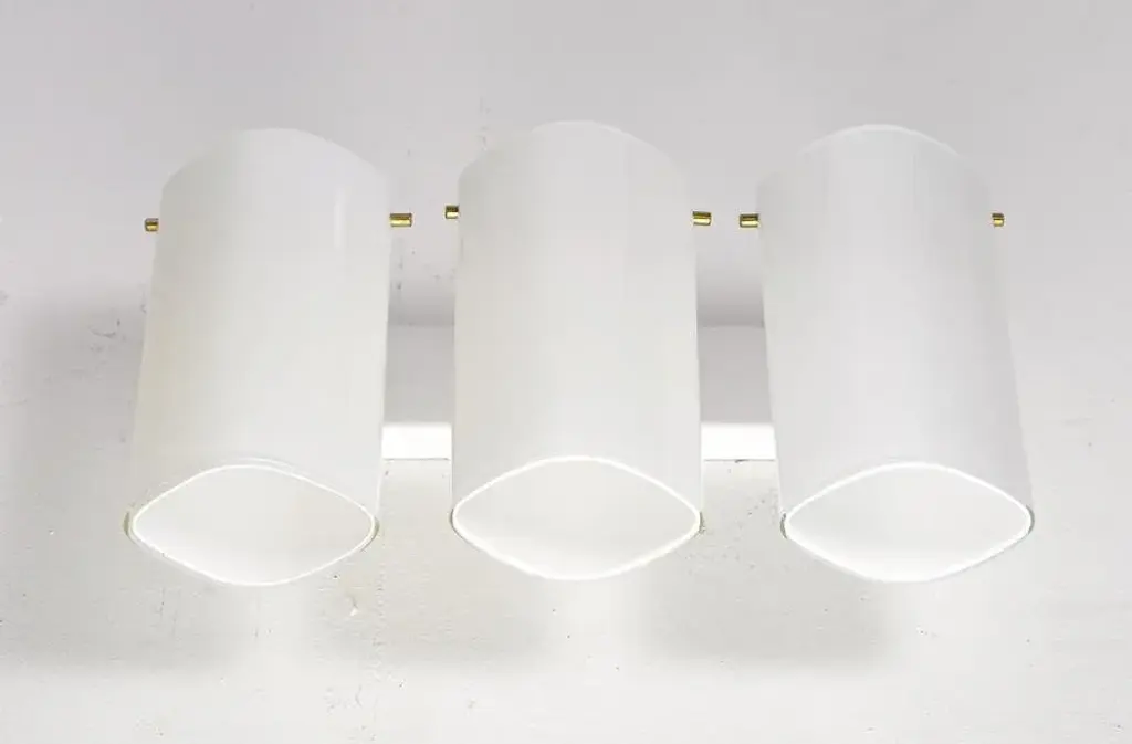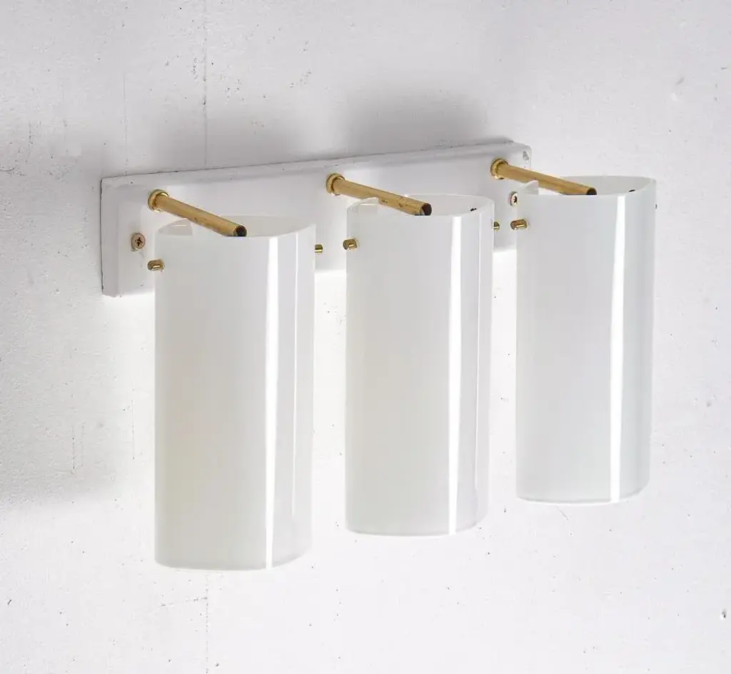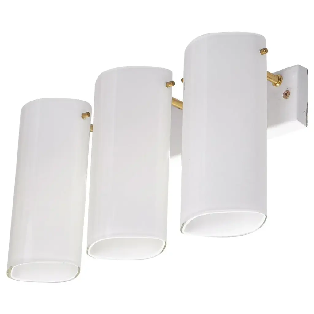 Rare model. A vailable. 3-armed, opaline glass and brass. Produced by Fagerhults, late 1960s. This piece is attributed to the mentioned designer/maker. It has no attribution mark and no official proof of authenticity, however it is well documented in design history. I take full responsibility for any authenticity issues arising from misattribution, Up to 250V (Europe/UK Standard).The wiring of this item may be original and might need replacement, if not specified otherwise.