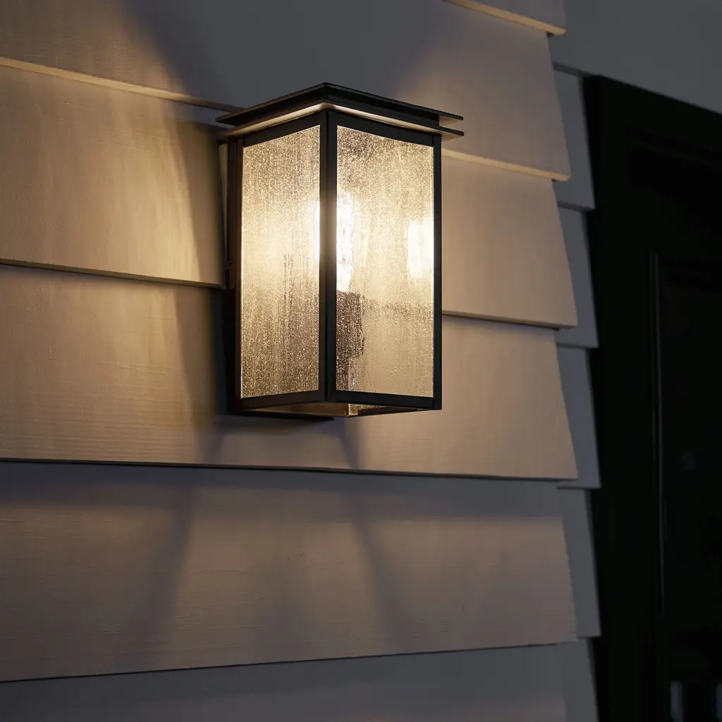 Inspired by the architectural stylings of Frank Lloyd Wright, the Arkville 10 Inch 1 light outdoor wall light harmoniously blends American Prairie style with an Arts and Crafts motif. Its stacked metal roof in Textured Black plays beautifully with the clear seeded glass. Subtle, refined and clean, Arkville elevates outdoor living.