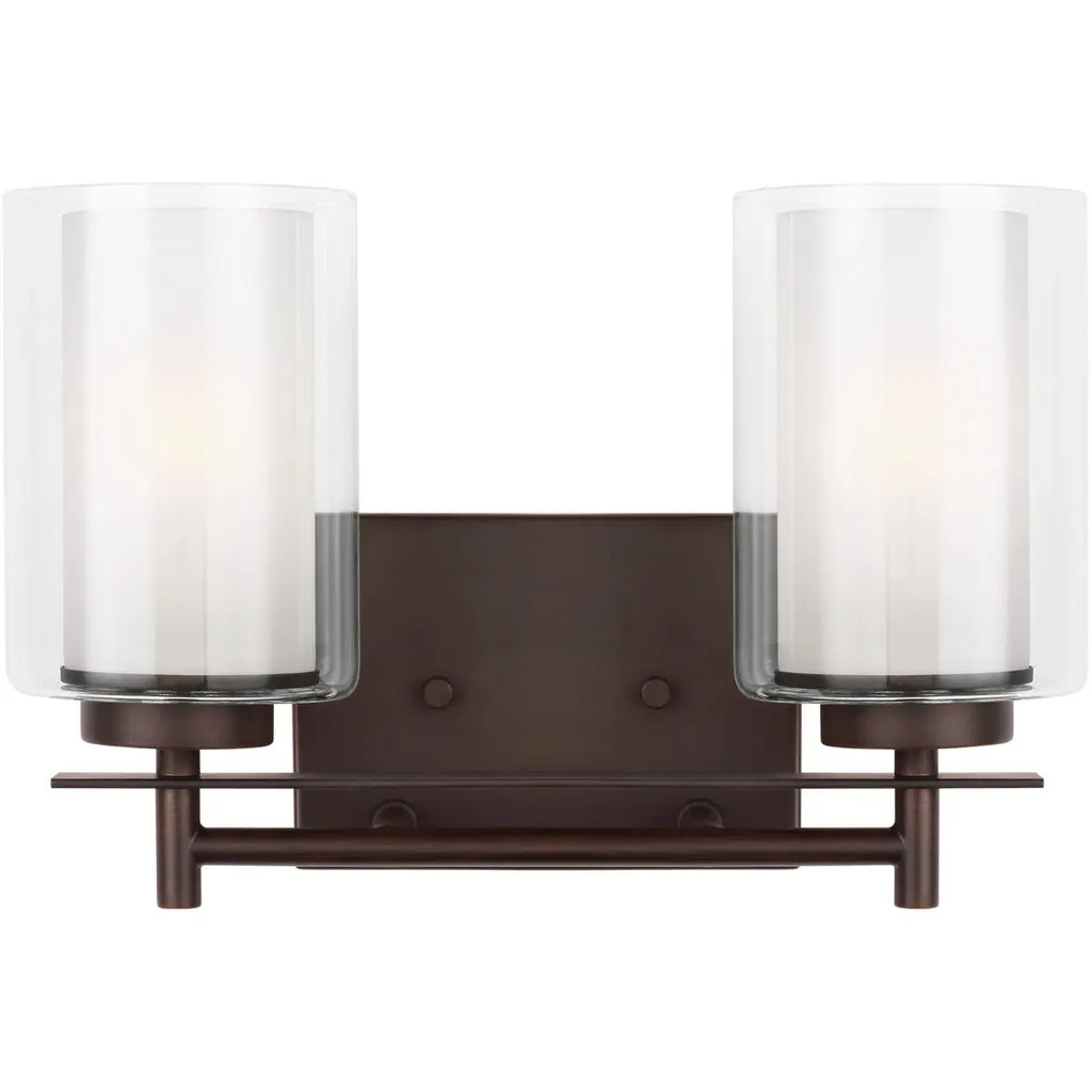 This 2 light bath light from the Armida(TM) collection is filled with distinctive touches, clean lines and simple structures. This silhouette brings height and dimension to the Olde Bronze finish. May be installed with the glass up or down.
