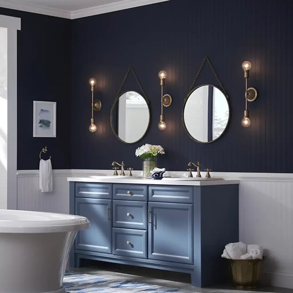 The name an homage to the person who first walked on the Moon, the Kichler Armstrong Wall Sconce is a minimalists take on the classic "Sputnik" inspired look. A single long thin rod hosts double exposed bulbs, projecting from a round backplate. Simple while still making an impact, this less is more piece will illuminate your living space with a dash of panache.