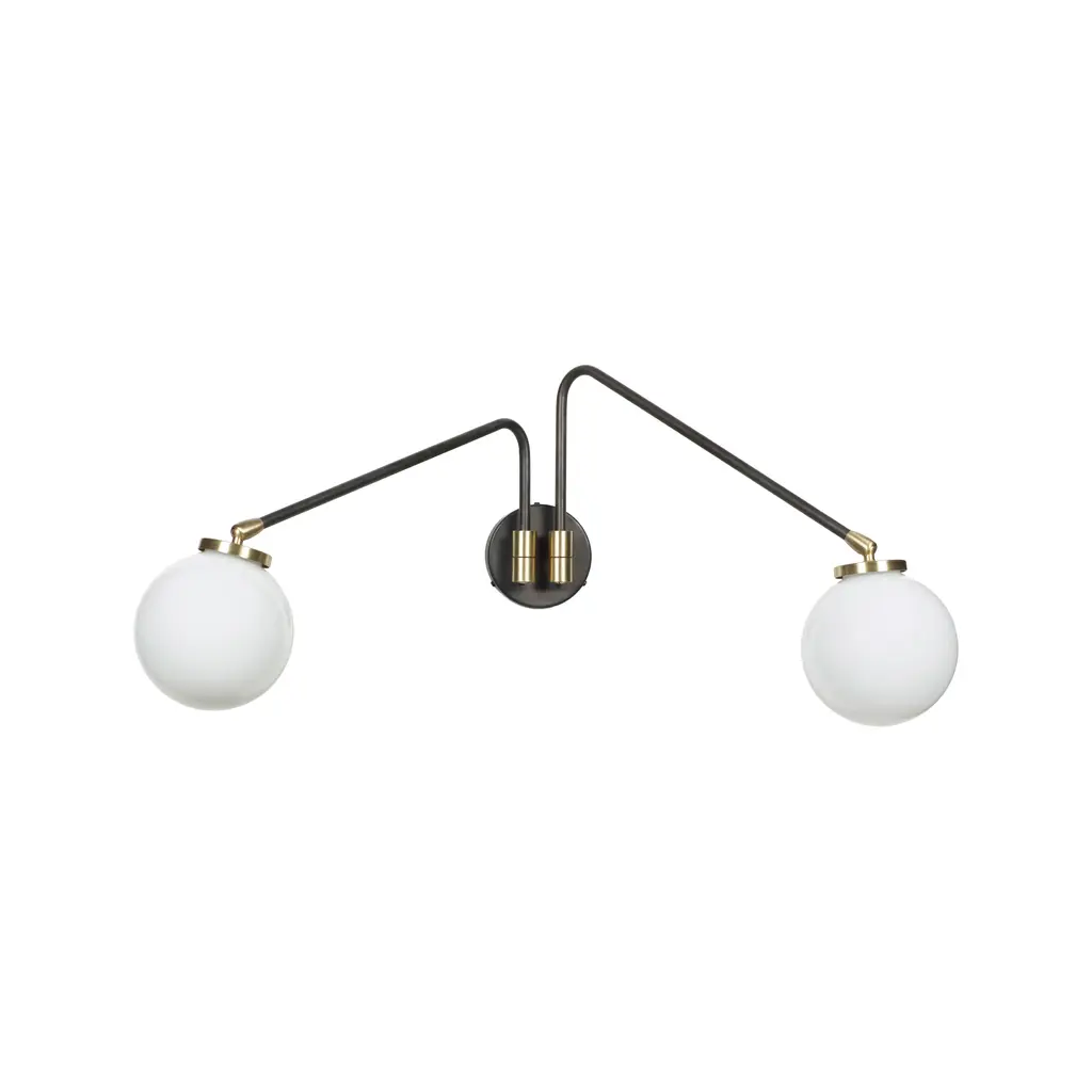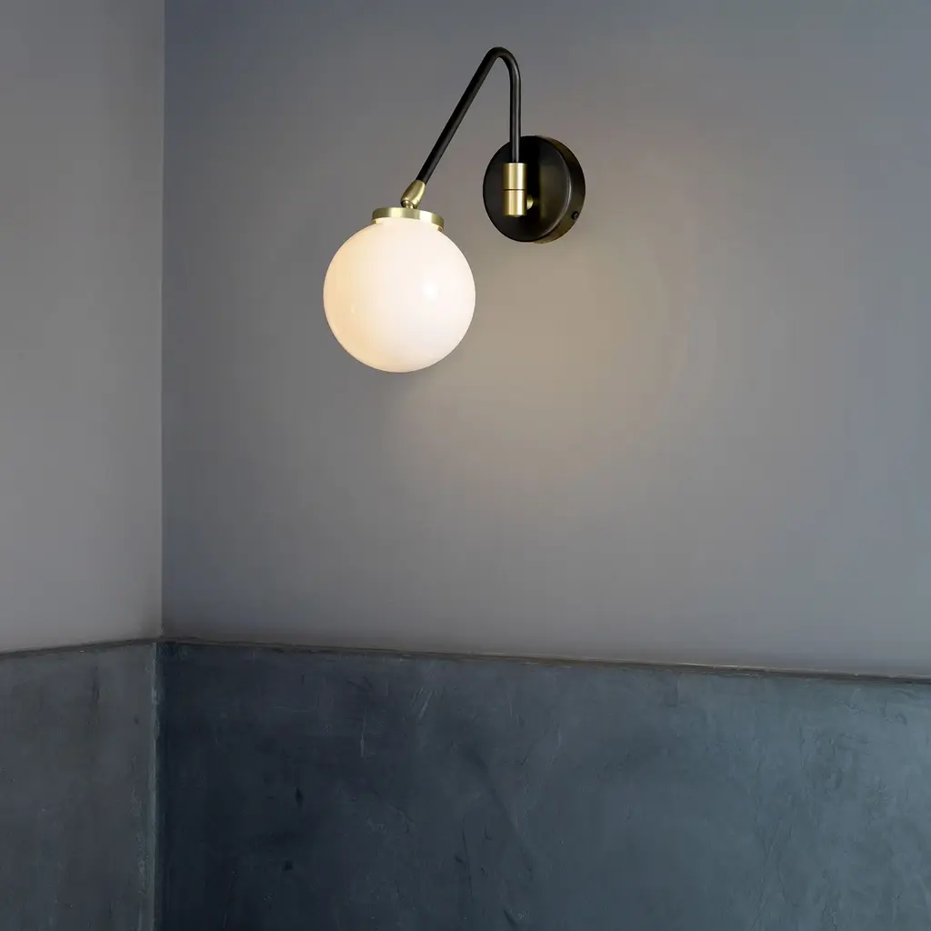 Experience the elegance and sophistication of the Array Opal Wall Sconce from CTO Lighting. Inspired by vintage-modern design and the beauty of 1960s Italy, this sculptural piece features a hand-waxed and bronzed brass arm and a hand-blown opal glass shade with gilded trim. Its adjustable design offers endless possibilities for placement, while the softly diffused ambient light creates a warm glow in any interior. Highlights