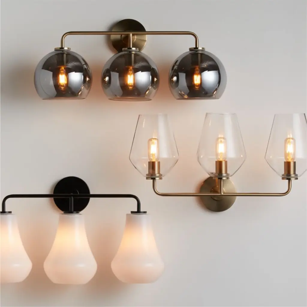 Brighten a hallway, bathroom or entryway with our modern-yet-timeless Arren three-light sconce. Bending gracefully from the wall, an iron base finished in black supports a trio of softly angled clear glass shades. The clean-lined sconce can be positioned with its slim, arched arms facing up for ambient light or down for more focused illumination above your kitchen sink, in a hallway or over a bookcase. Designed by Mark Daniel of Slate Design exclusively for us, this three-light wall sconce is part of our Arren collection of flexible lighting options with a custom feel. Our versatile Arren lighting collection combines single- and multi-bulb pendants, sconces and lamps in a variety of configurations and finishes with elegant glass shades available in three shapes and three finishes.