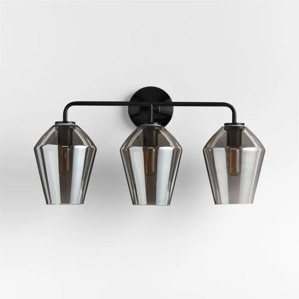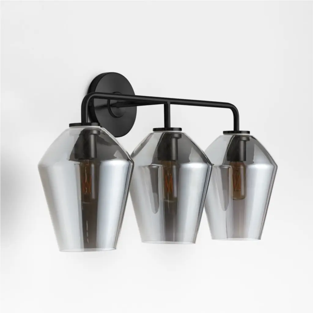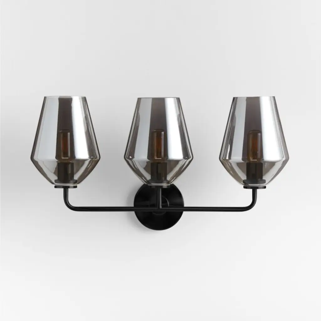 Arren Black 3-Light Wall Sconce With Silver Angled Shades