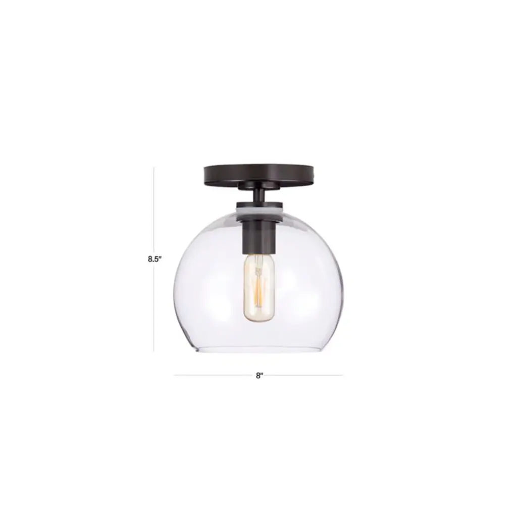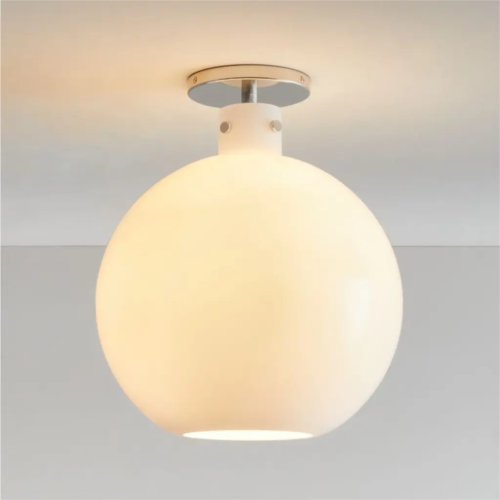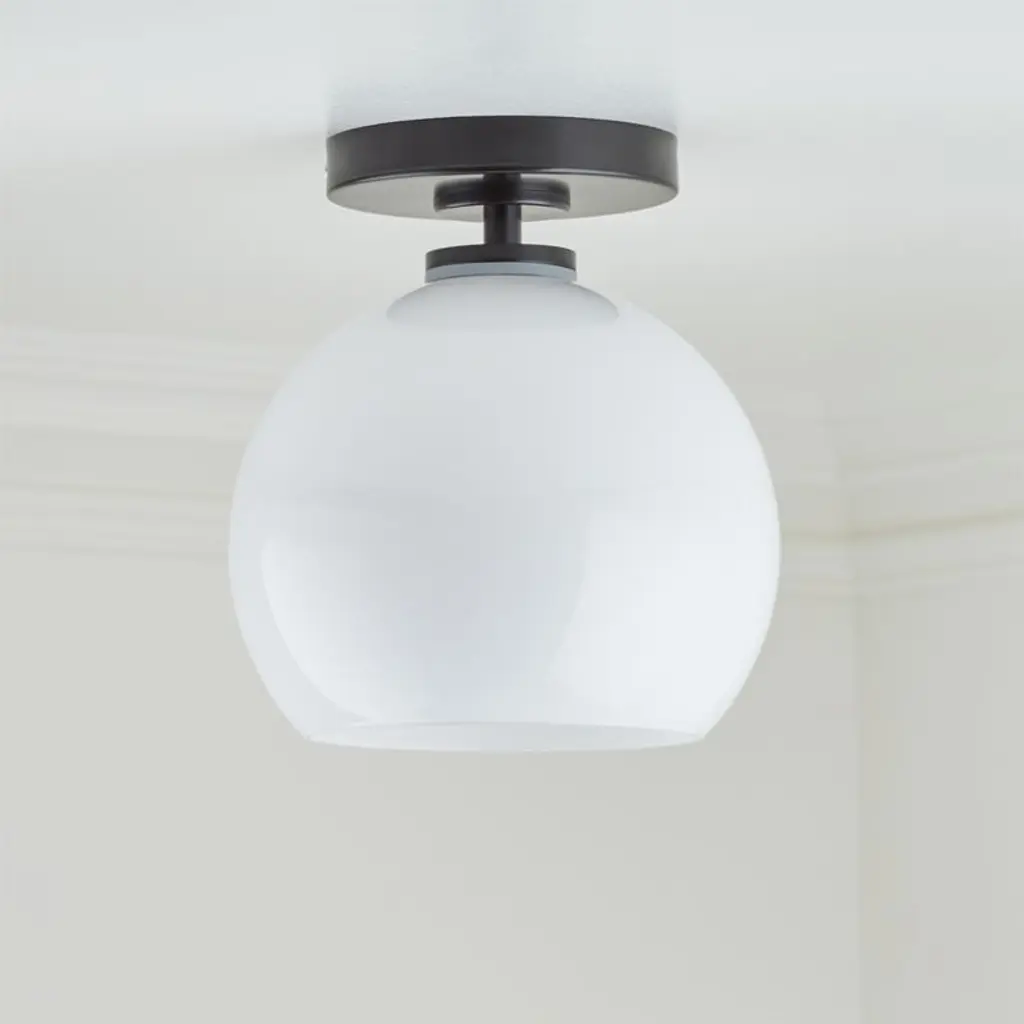 Arren Black Flush Mount Light With Milk Round Shade 8"