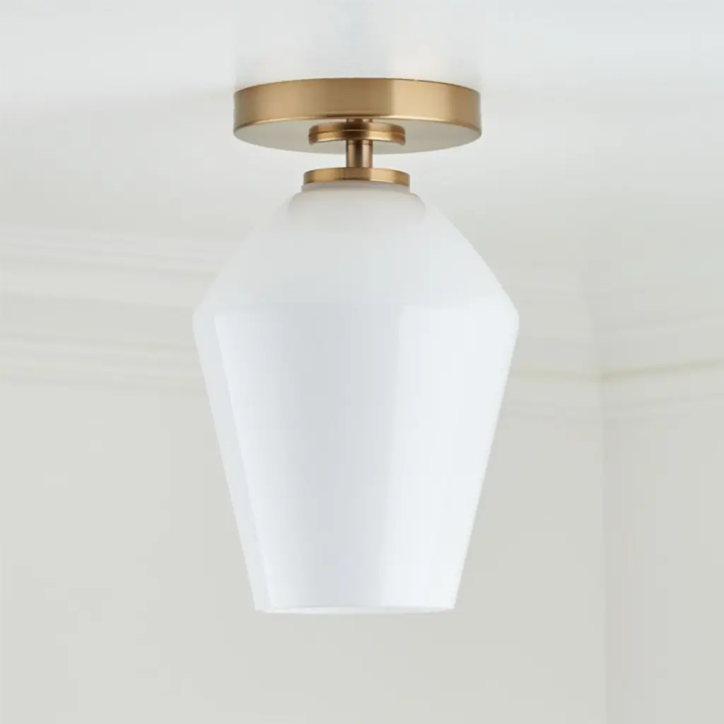 Arren Brass Flush Mount Light With Milk Angled Shade 6.7"