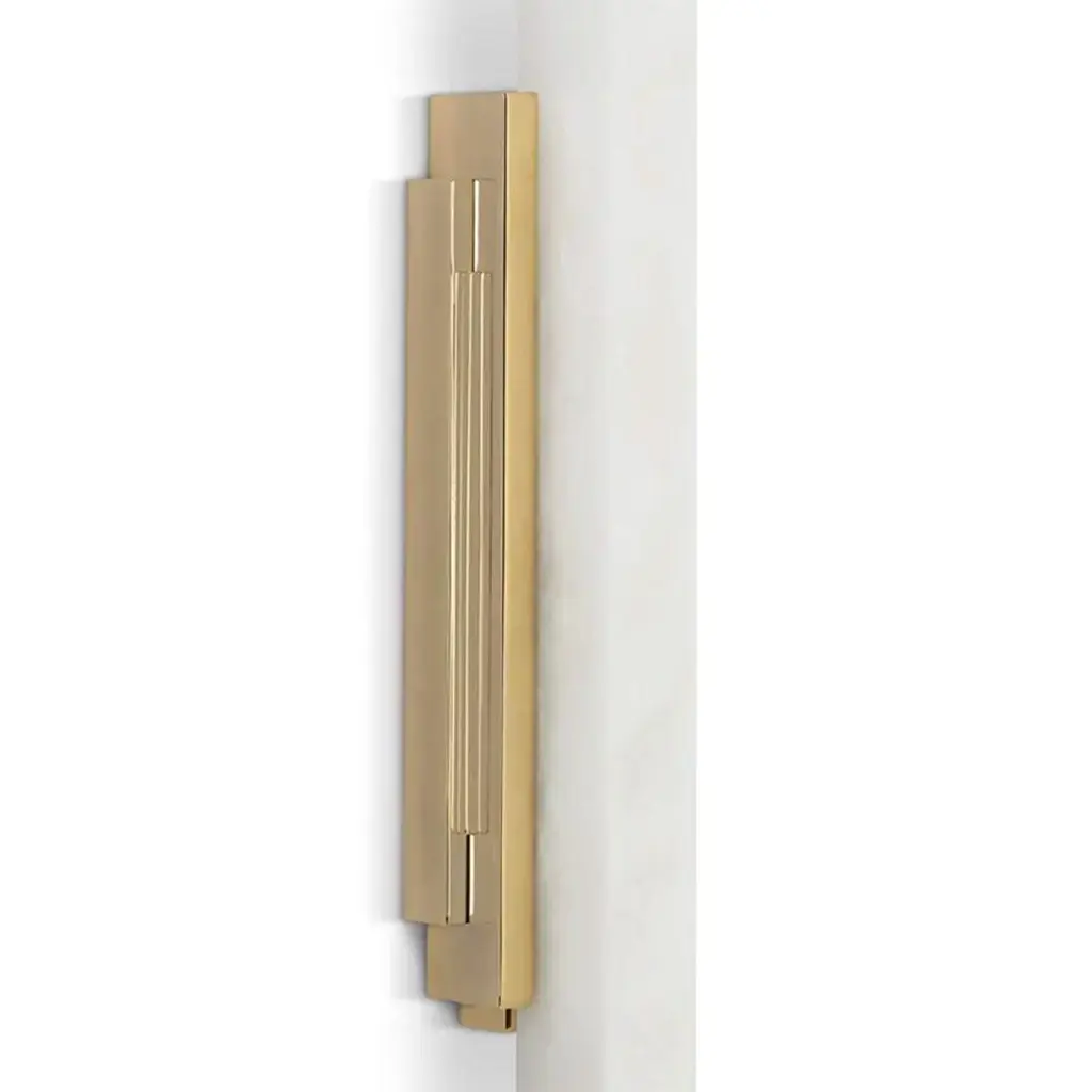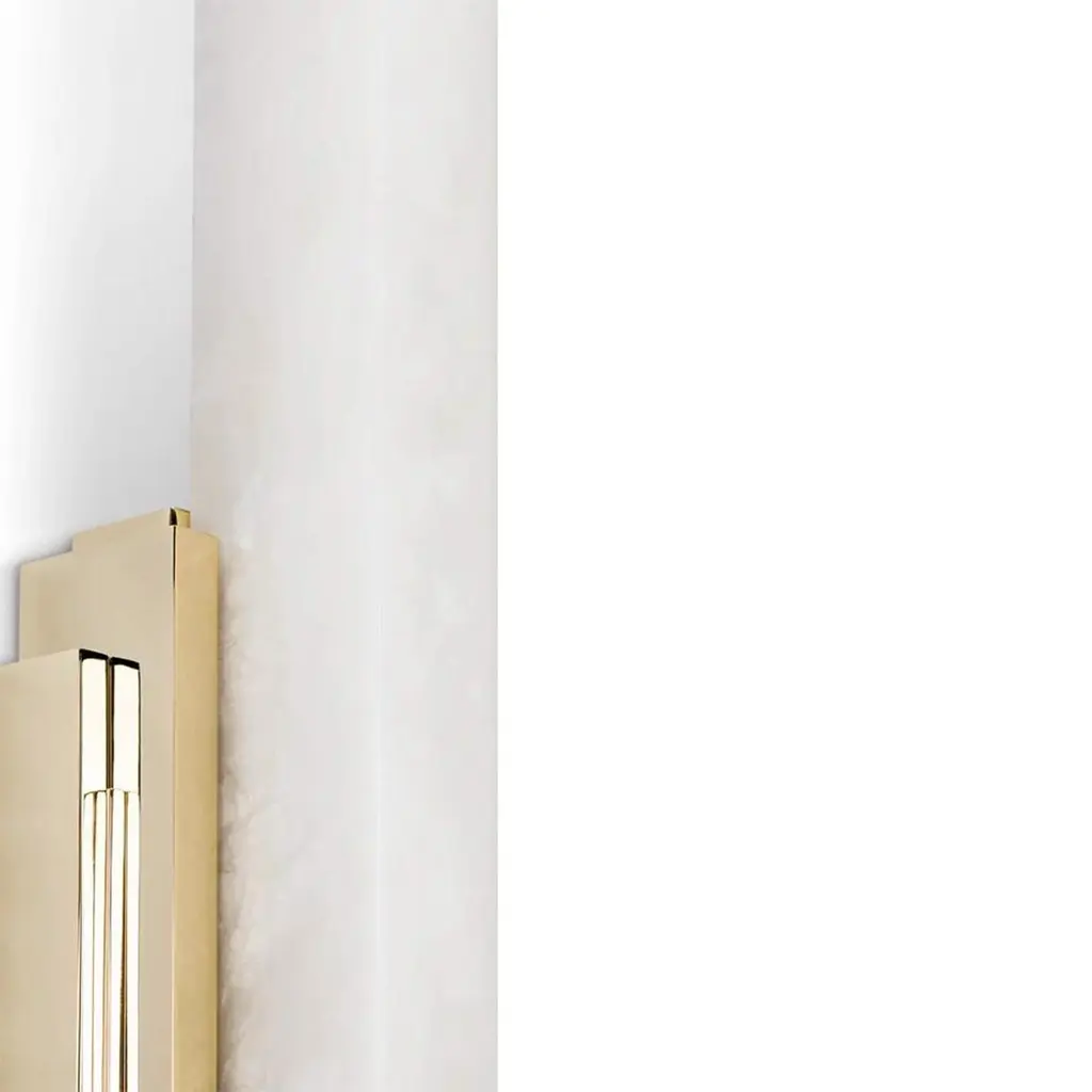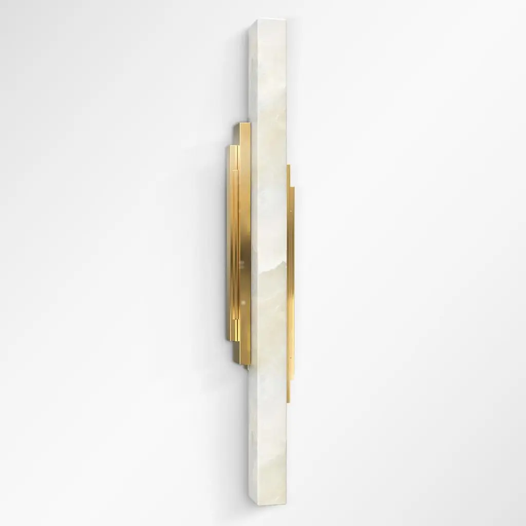 Wall Lamp Arrow Alabaster with structure in solid brass in polished finish and with alabaster light diffuser.