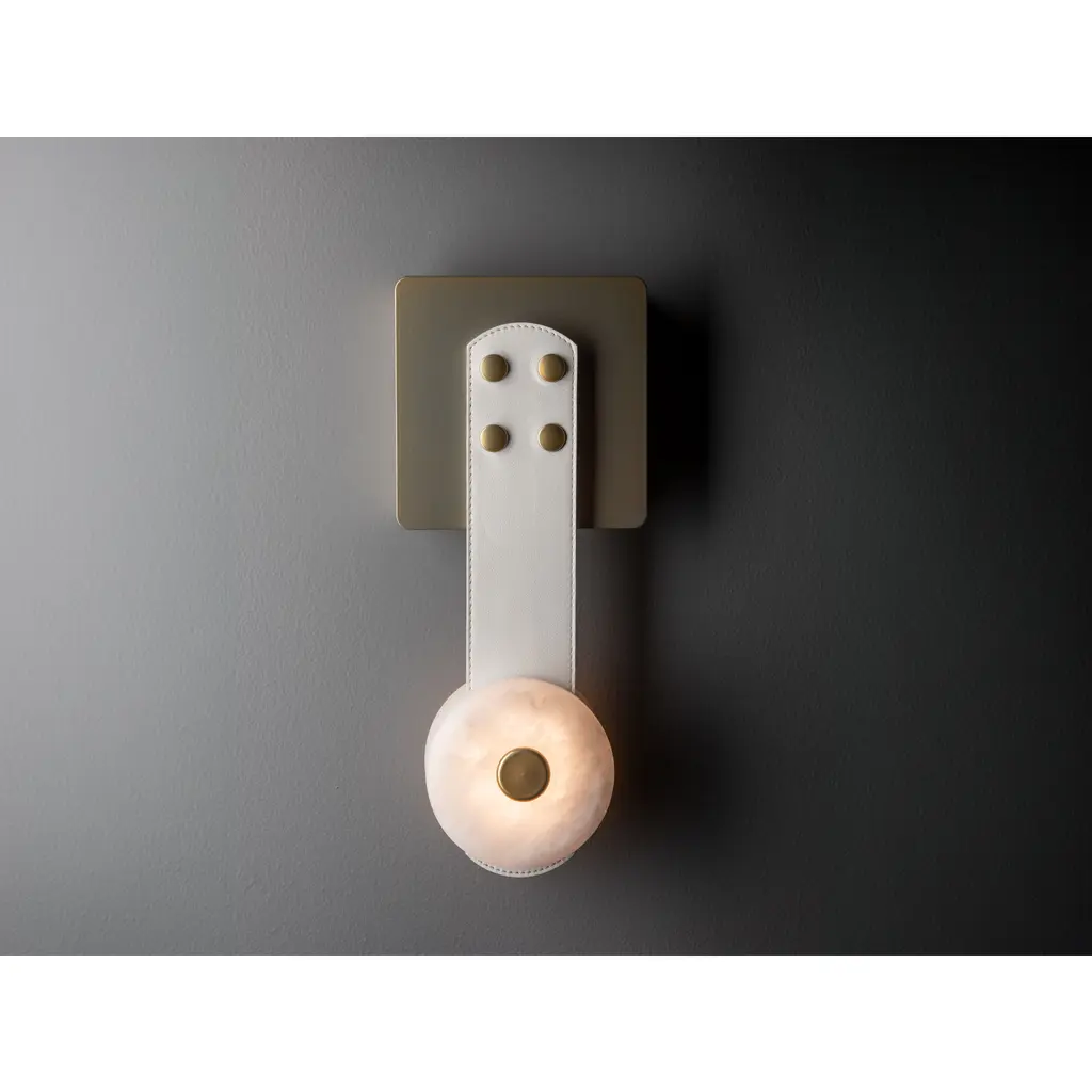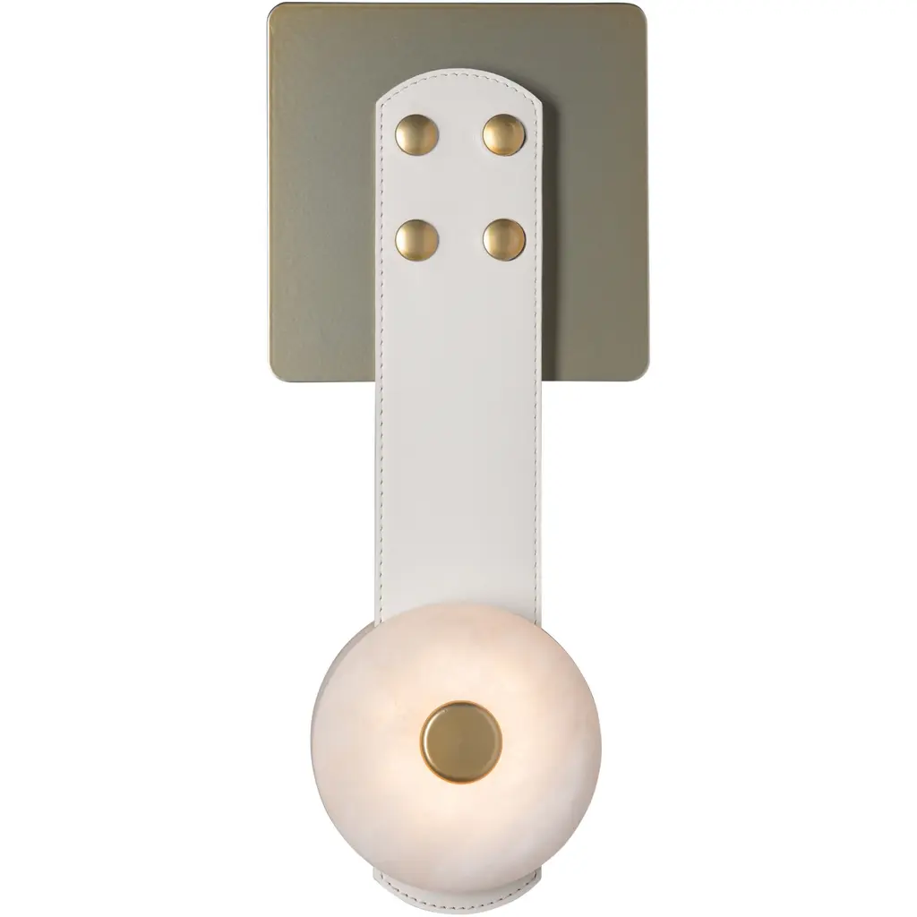 Art & Alchemy Snaps Led 5.5 Inch Black Sconce Wall Light In White Leather With Alabaster