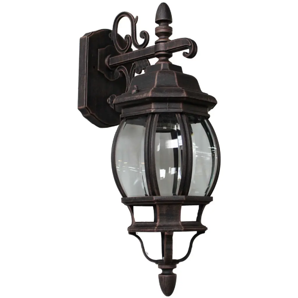 Classico small outdoor wall mount, European styled lantern-down with clear glassware and in white finish . Warranty: 25 Years warranty on corrosion and 5 Years warranty on paint defectsRoom Style: Exterior Lighting / Shade Included: Yes / Dimmable: Yes. , Material: Aluminum, Finish Color: White, Width: 9.25", Height: 17.5", Length: 9.25", Depth: 6.25", Height From Outlet Box: 0.88", Backplate Width: 4.5", Backplate Length: 7", Lamping Type: Incandescent, Number Of Bulbs: 1, Wattage: 100 Watts, Dimmable: Yes, Moisture Rating: Wet Rated