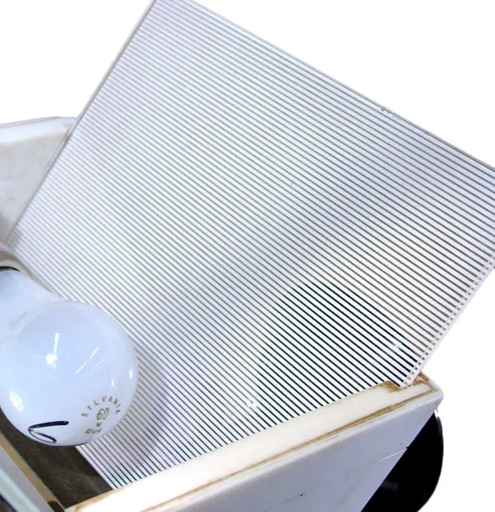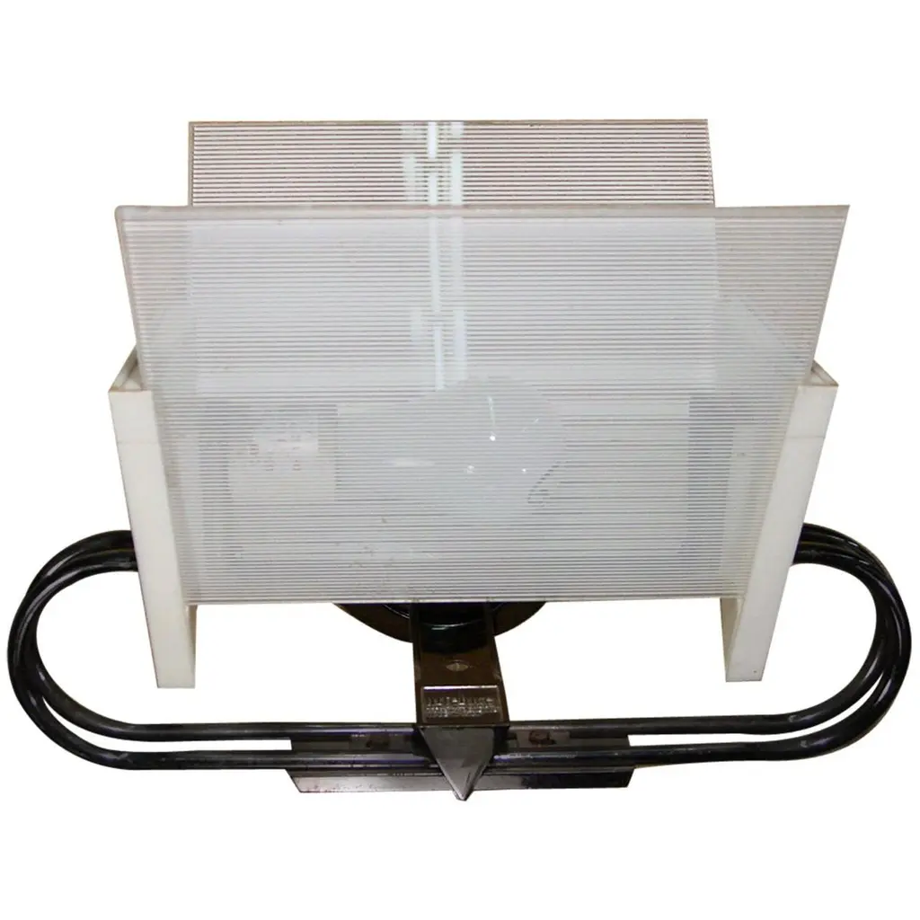 This lamp is a fine example of Arteluce's ”Triana” wall lamp featuring two sets of interchangeable Murano glass. One set is white while the other features lined white strips over translucent glass. The triangular side panels are white resin.Arteluce was founded in Italy in 1936. Through the years, many leading designers were commissioned to design lighting. Some notable designers include Franco Albini and Marco Zanuso. In 1974, the company became a division of the Flos group.Listing for one Sconce, five available