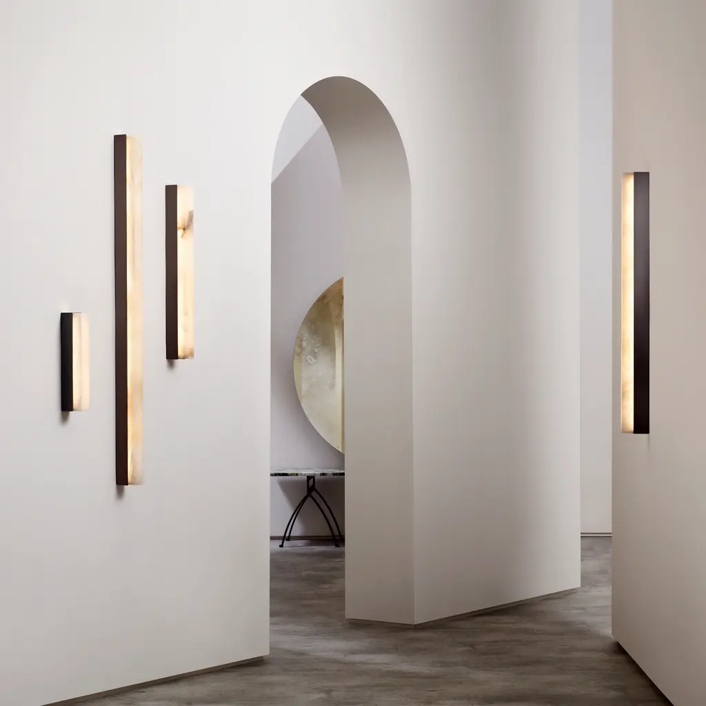 Add a touch of architectural elegance to your space with the Artes Wall Sconce from CTO Lighting. The sleek and stylish design provides a bold statement and can be used alone or grouped in varying finishes and sizes for a dynamic display. Natural alabaster stone creates a warm and inviting glow when illuminated, adding a hint of organic luxury to your interior. Highlights