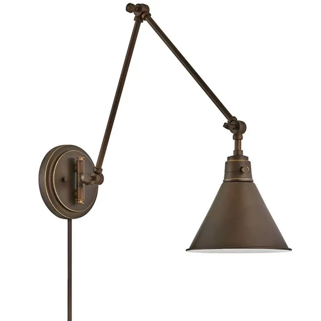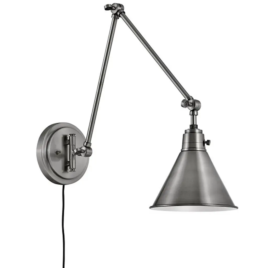 Enjoy endless adjustability and functionality with the Arti Two Arm Wall Sconce by Hinkley Lighting. A sleek, slim backplate with subtle circular detailing matches the flow of the piece as each connected arm rotates and swivels for a myriad of placements. With a wide-open end on the conical shade, the Arti allows for a maximum flow of light while maintaining a stark, focused glow perfect for reading, crafting, or other tasks that require precision.