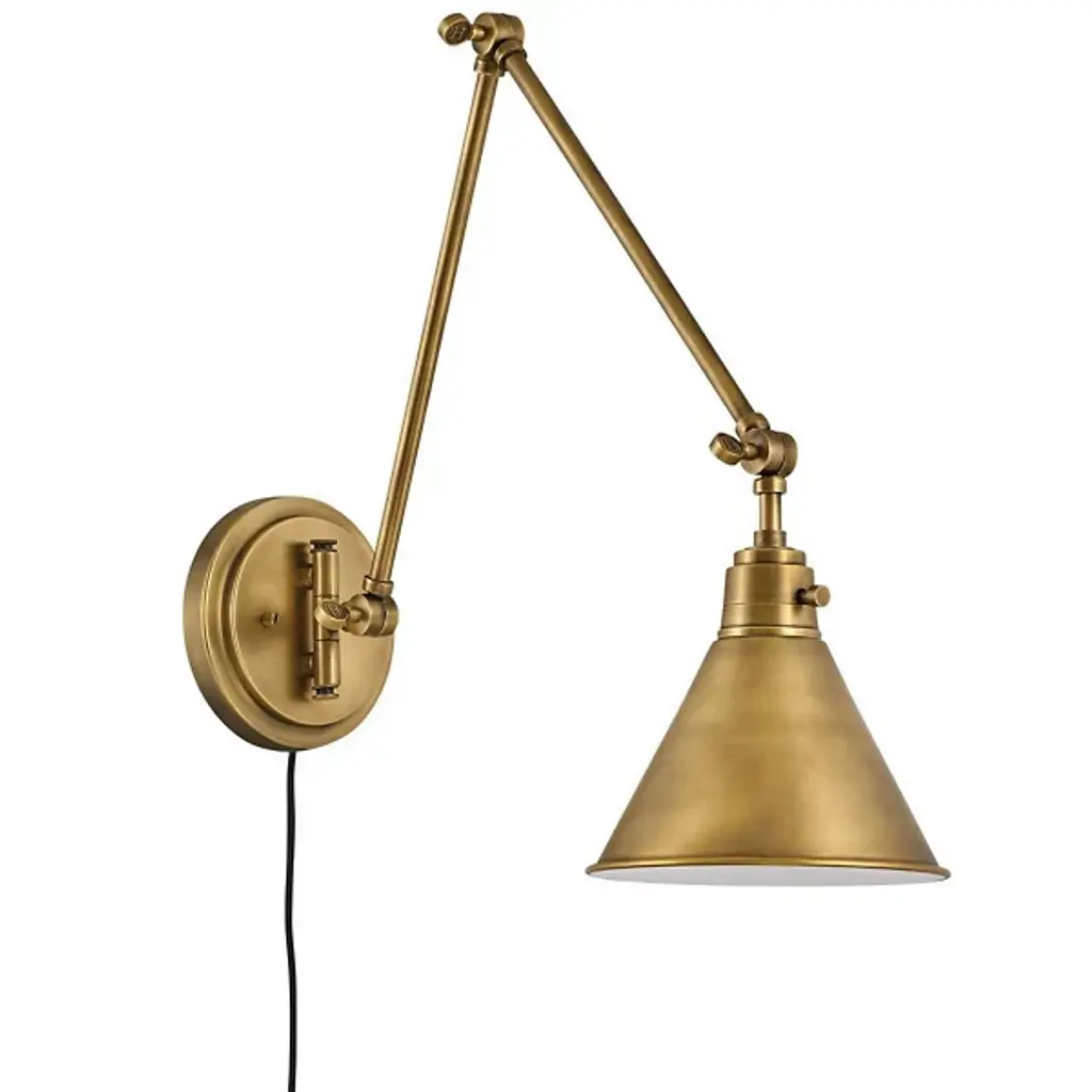 Enjoy endless adjustability and functionality with the Arti Two Arm Wall Sconce by Hinkley Lighting. A sleek, slim backplate with subtle circular detailing matches the flow of the piece as each connected arm rotates and swivels for a myriad of placements. With a wide-open end on the conical shade, the Arti allows for a maximum flow of light while maintaining a stark, focused glow perfect for reading, crafting, or other tasks that require precision.
