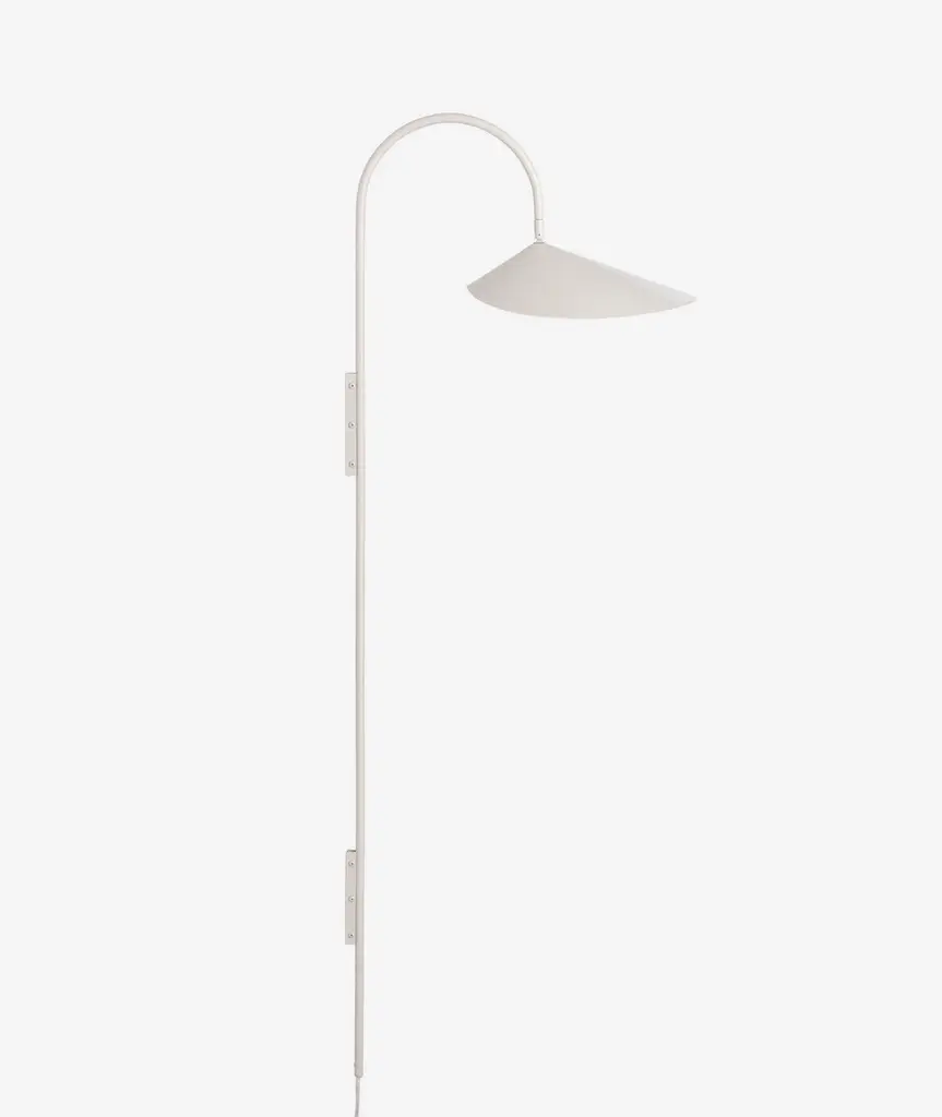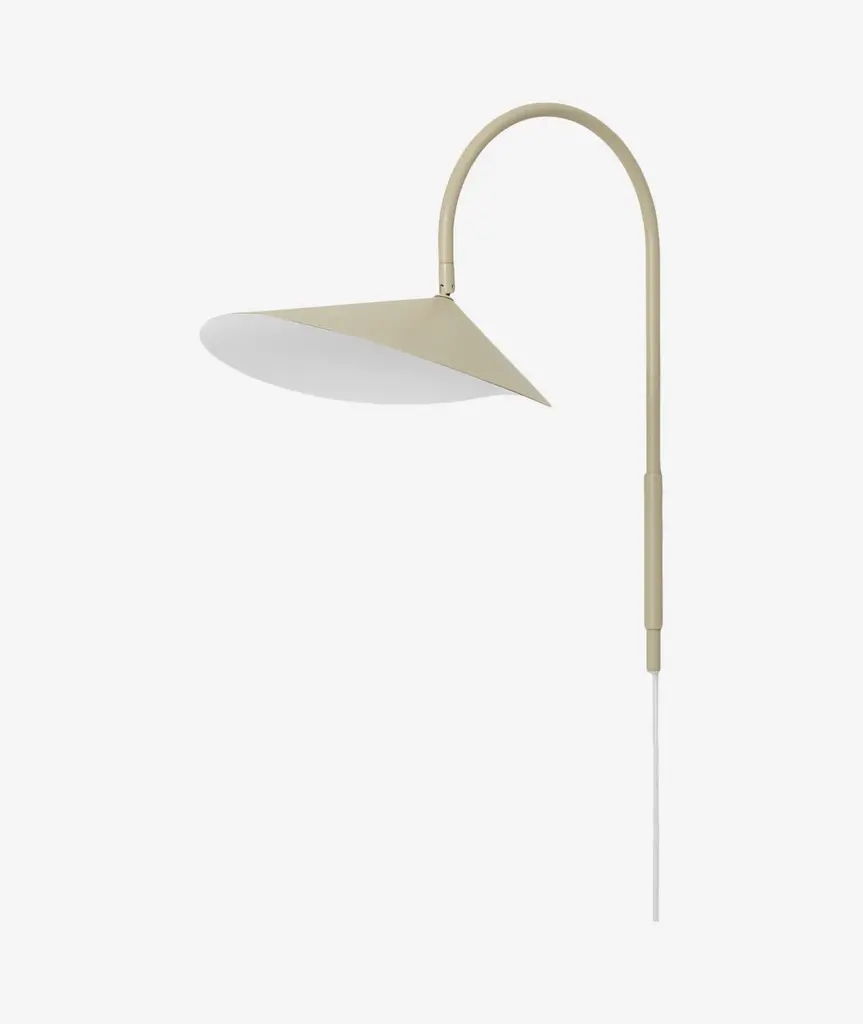 The Arum Swivel Wall Lamp is characterized by an organic shape that is elegantly suspended from a curved metal arch in a leaf-like manner. With the matte, off-white inside of the shade, the lamp provides a soft, evenly distributed light. The arm of the lamp includes a swivel mount, allowing the lamp to turn in all directions, ensuring that the Arum Swivel Wall Lamp will provide optimal light in every situation. The lamp includes a fabric cord with a switch and comes with a wall bracket, making it is easy to mount the Arum Swivel Wall Lamp on your desired wall.