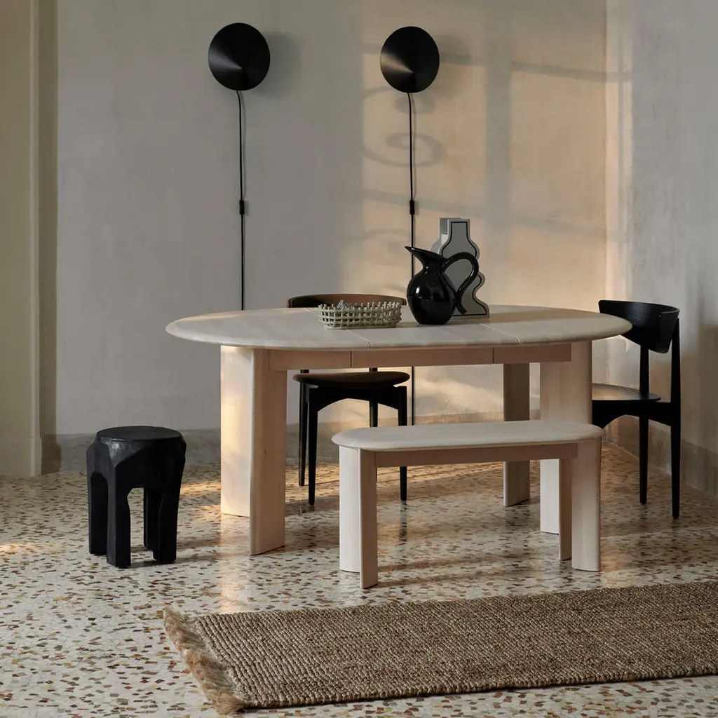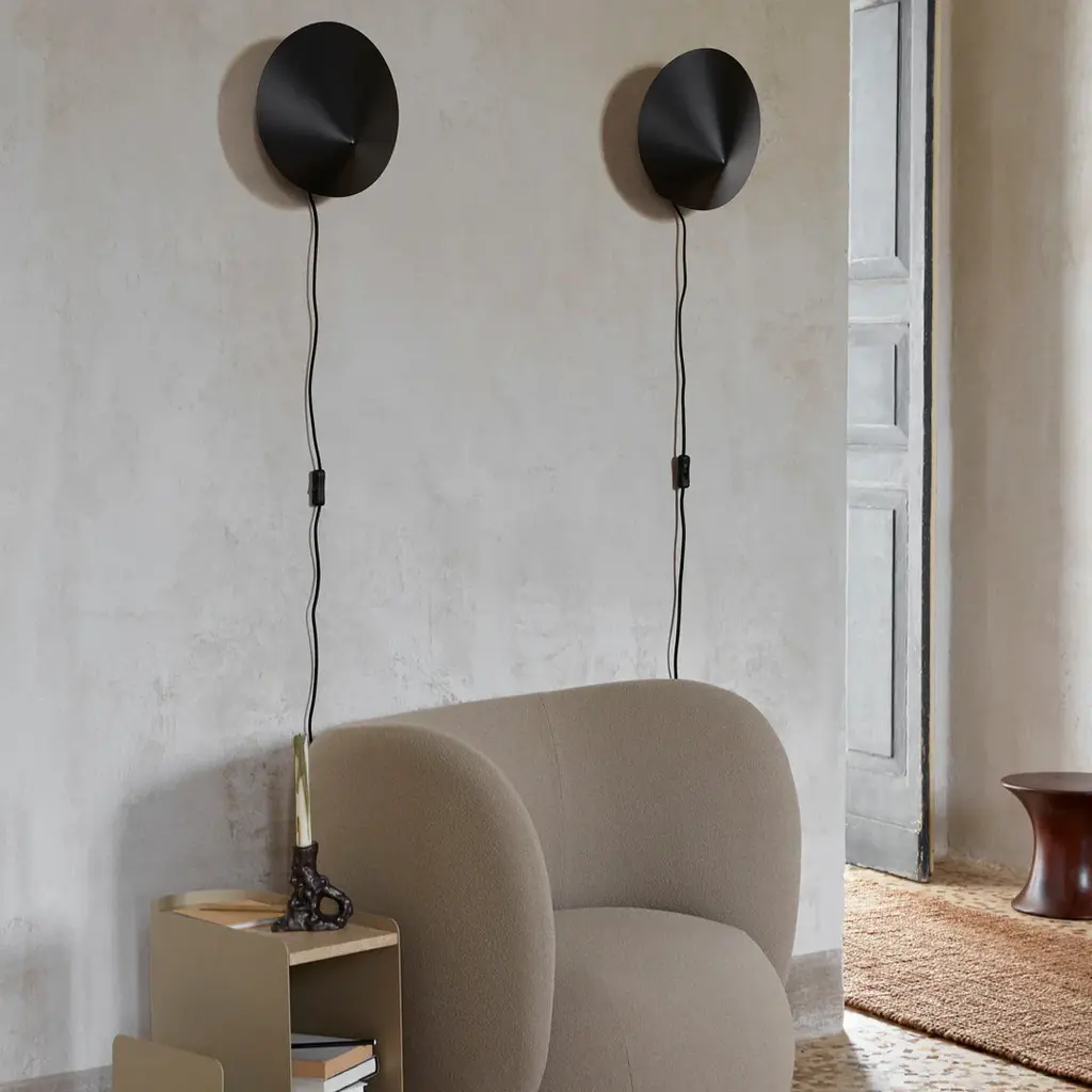 The Arum Wall Sconce is characterised by an organic shape that is elegantly suspended from a curved metal arch in a leaf-like manner. With the matte, off-white inside of the shade, the lamp provides a soft, evenly distributed light. The lampshade can be tilted up or down, ensuring that the Arum Wall Sconce will provide optimal light in all situations. The lamp includes a fabric cord with a switch and comes with a wall bracket, making it is easy to mount the Arum Wall Sconce on your desired wall.