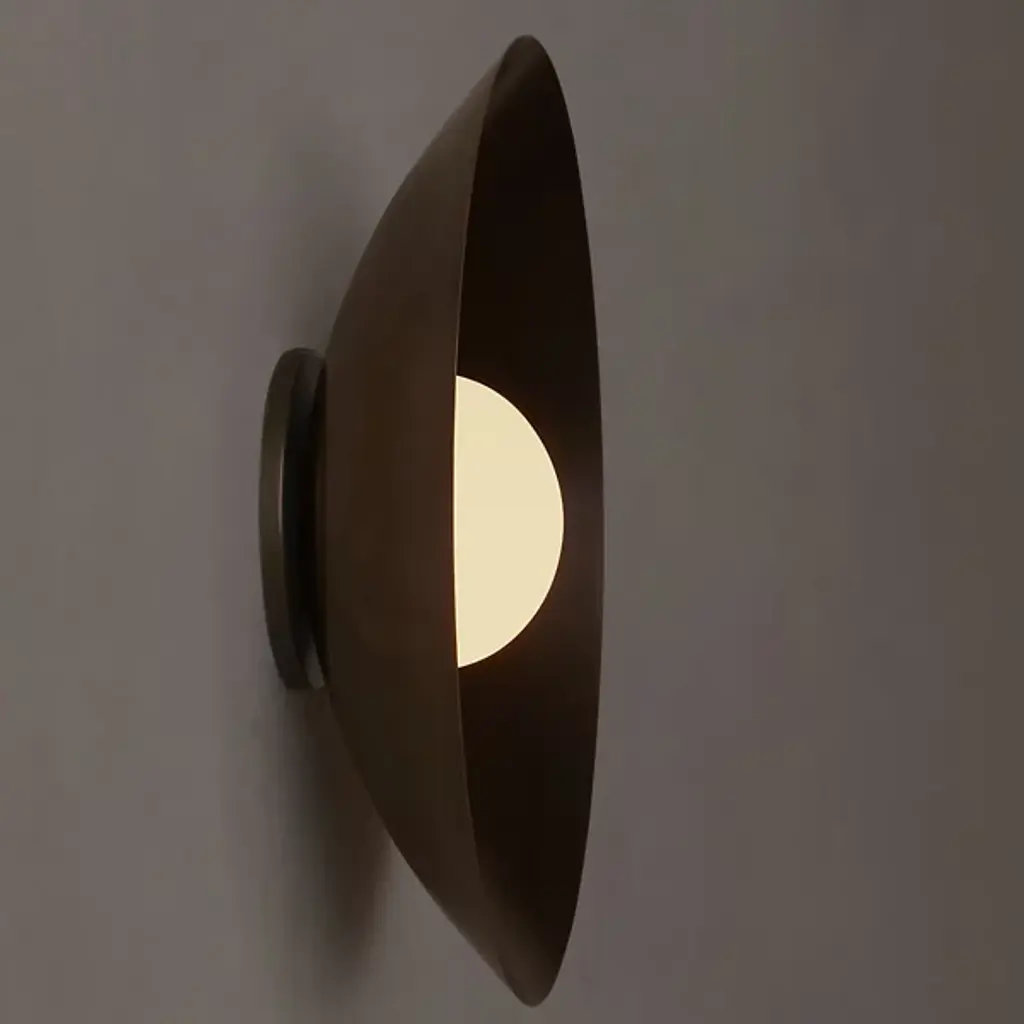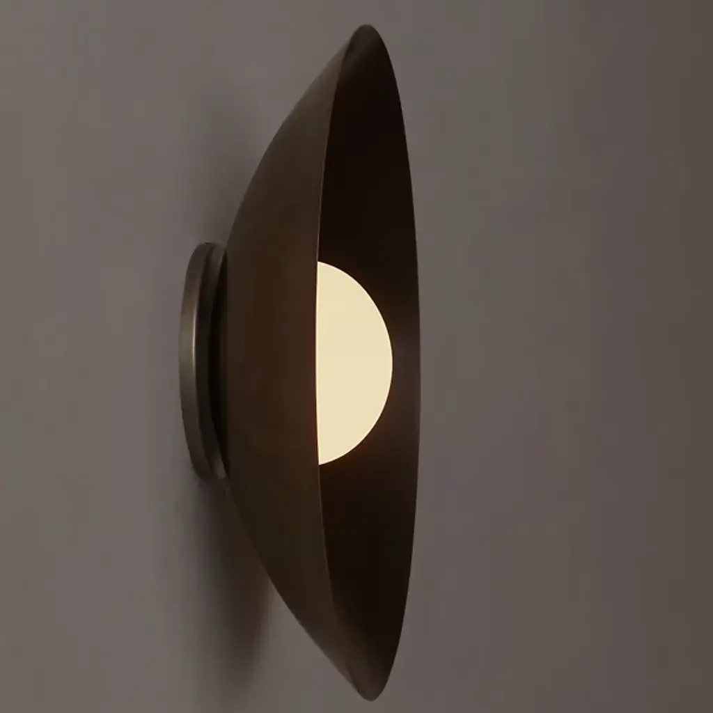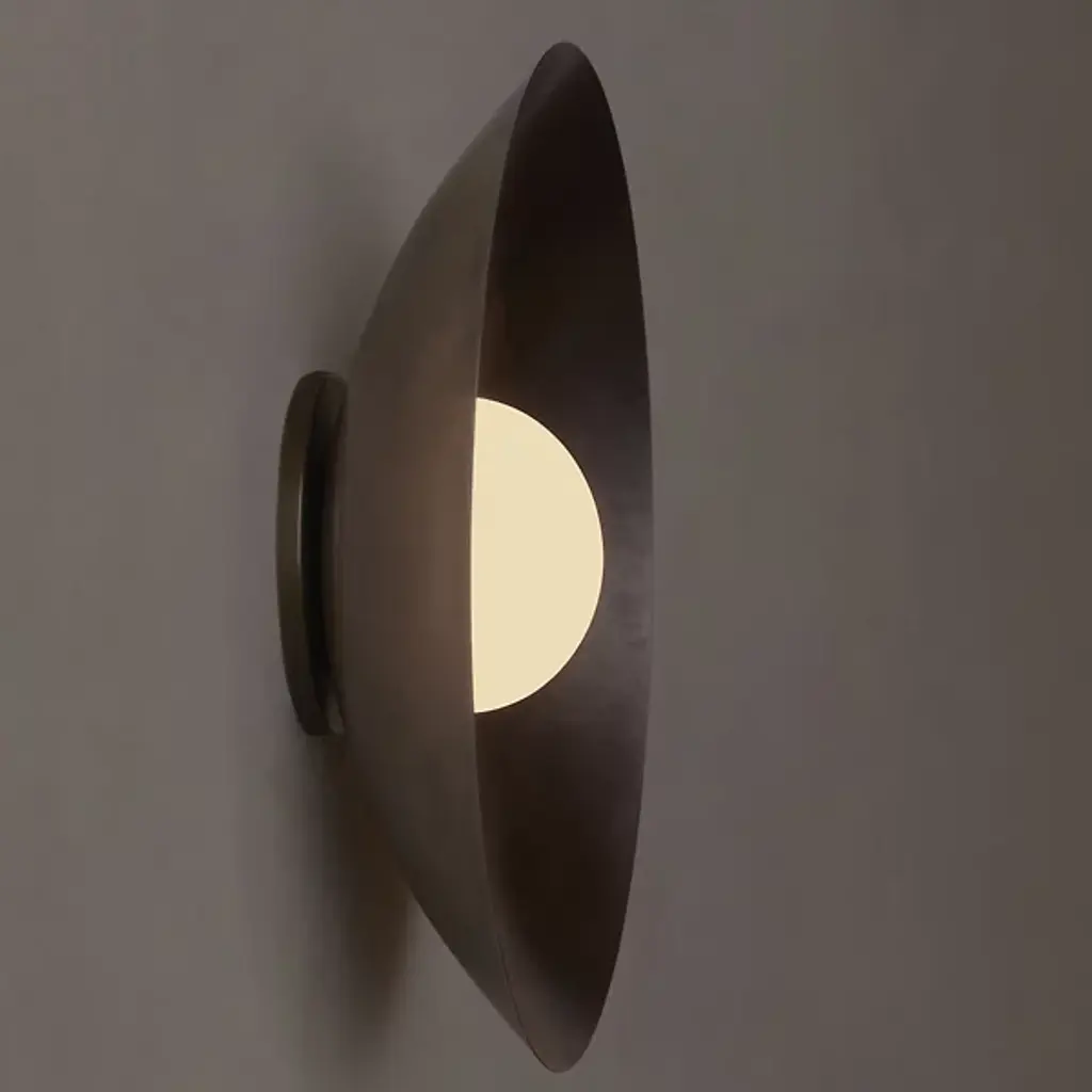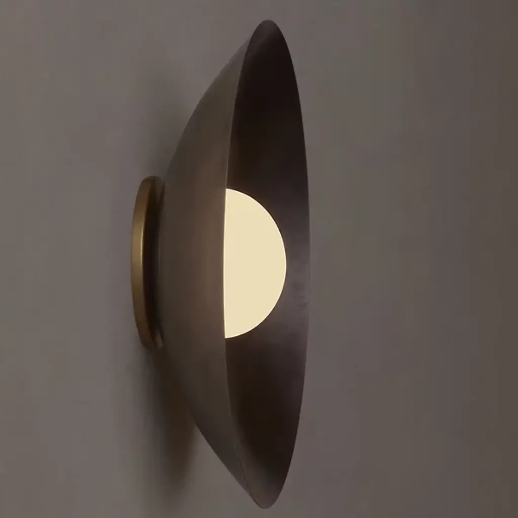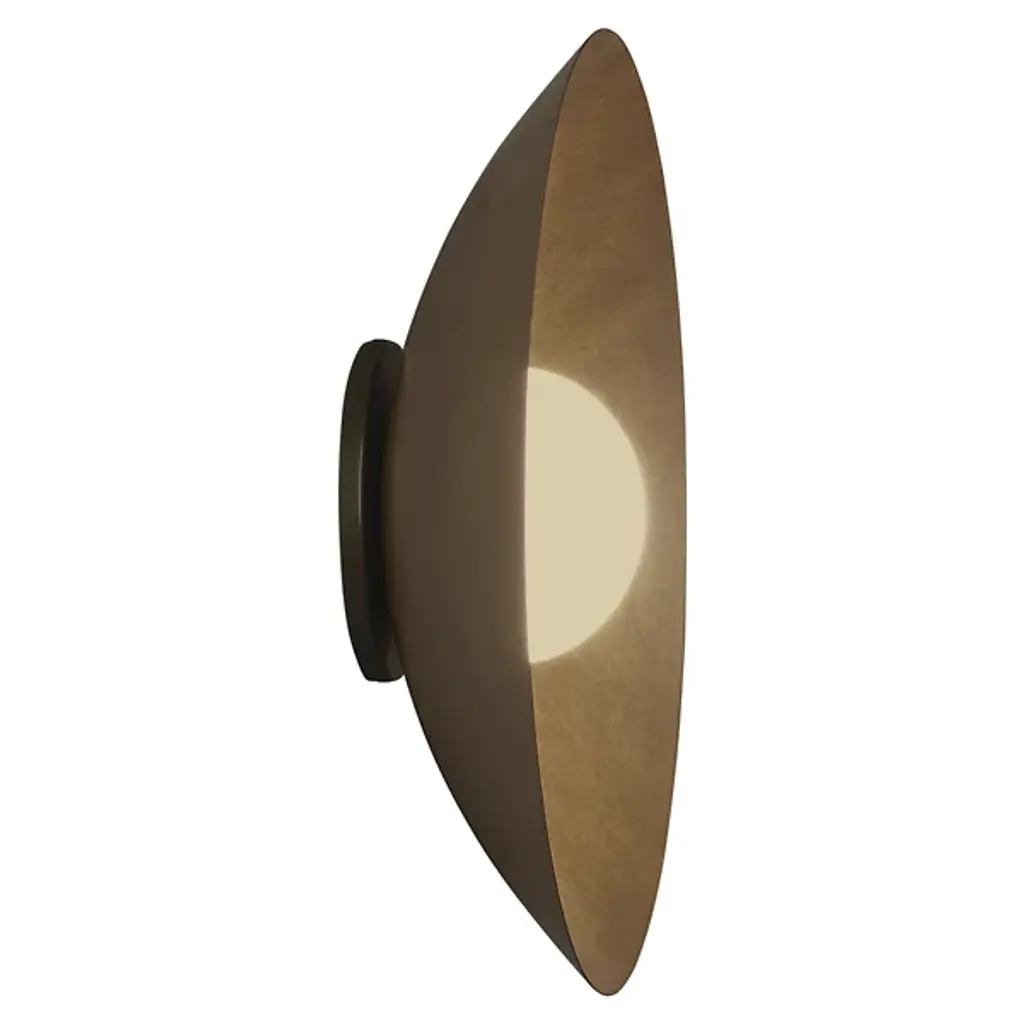 The Arundel Orb Brass Slim Wall / Flushmount by In Common With emerges from an unexpected discovery—an encounter with a "weird, wok-like light on a swivel at a garage sale in Maine." While this unique fixture is static, it pairs a spherical, hand-blown glass with the gentle curve of an Arundel shade crafted from lustrous spun brass, collaborating to emit a warm radiance. With its distinctive design, this sconce offers damp-listed lighting and a sleek aesthetic suitable for various decor styles ranging from Contemporary to retro-modern. This ADA-compliant fixture merges polished surfaces with artisanal craftsmanship, creating a captivating presence that bathes the space in inviting light.