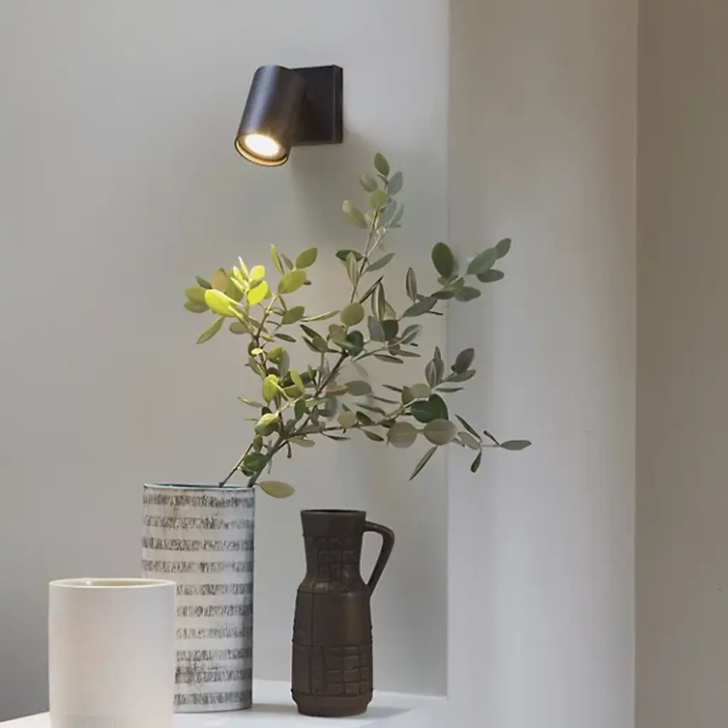 The Ascoli Single Square Wall Sconce by Astro Lighting offers easy access to directional light. A short arm supports a cylindrical metal head, with a concealed joint allowing for adjustability. Ideal as a bedside light for reading, it can also be mounted to a ceiling as a directional flushmount. Its simple design suits a wide range of interior décor styles, making it as adaptable as it needs to be.