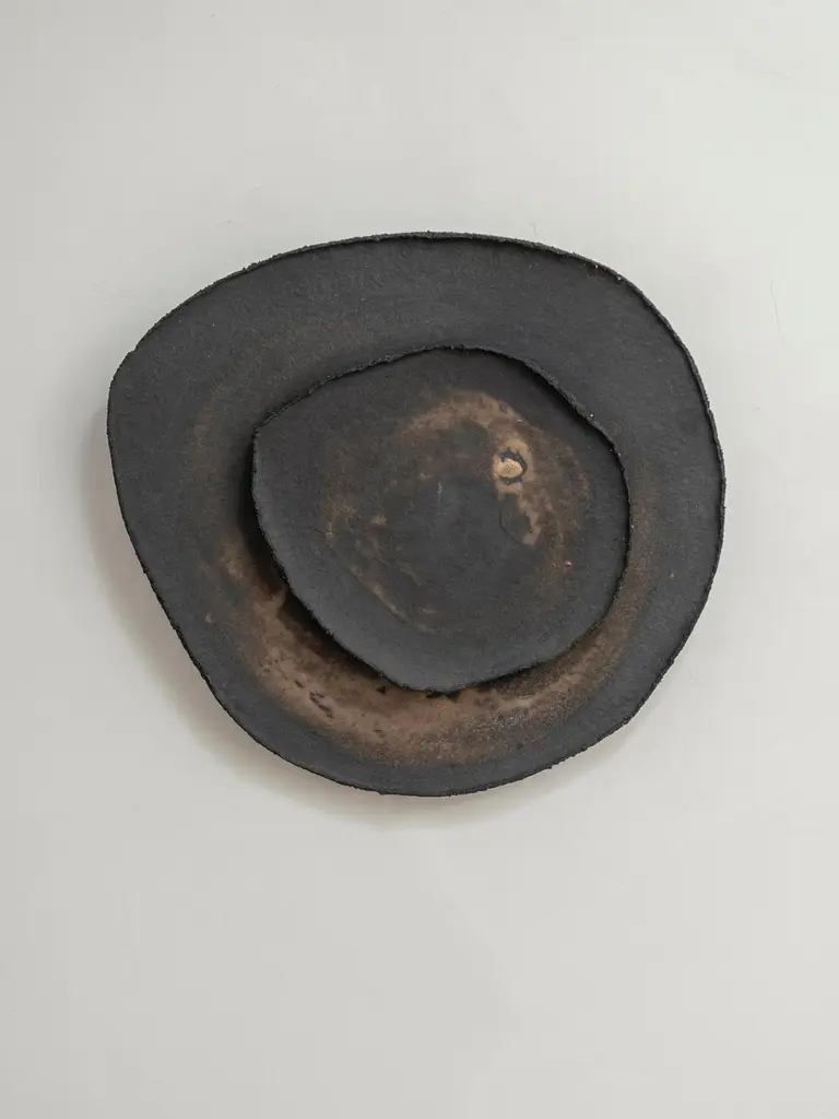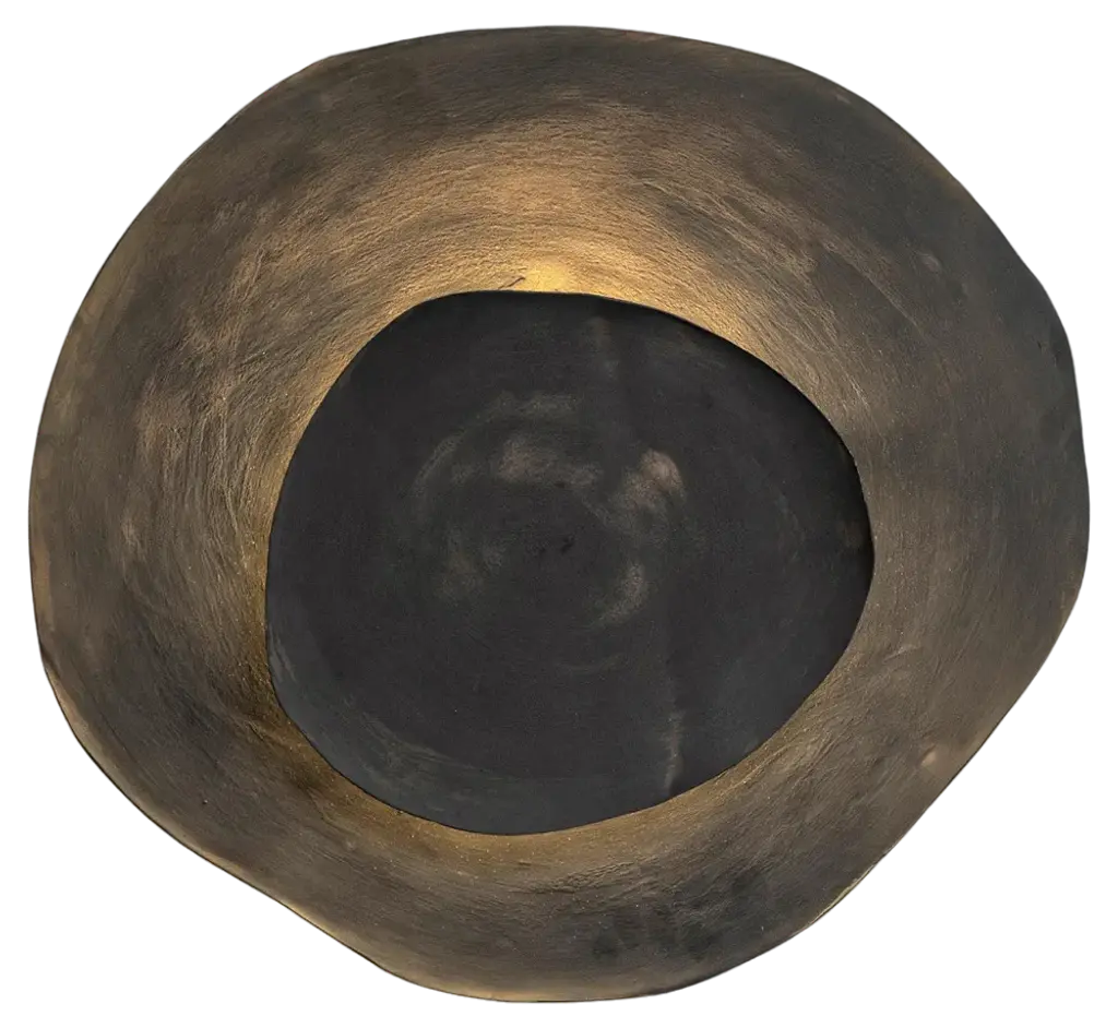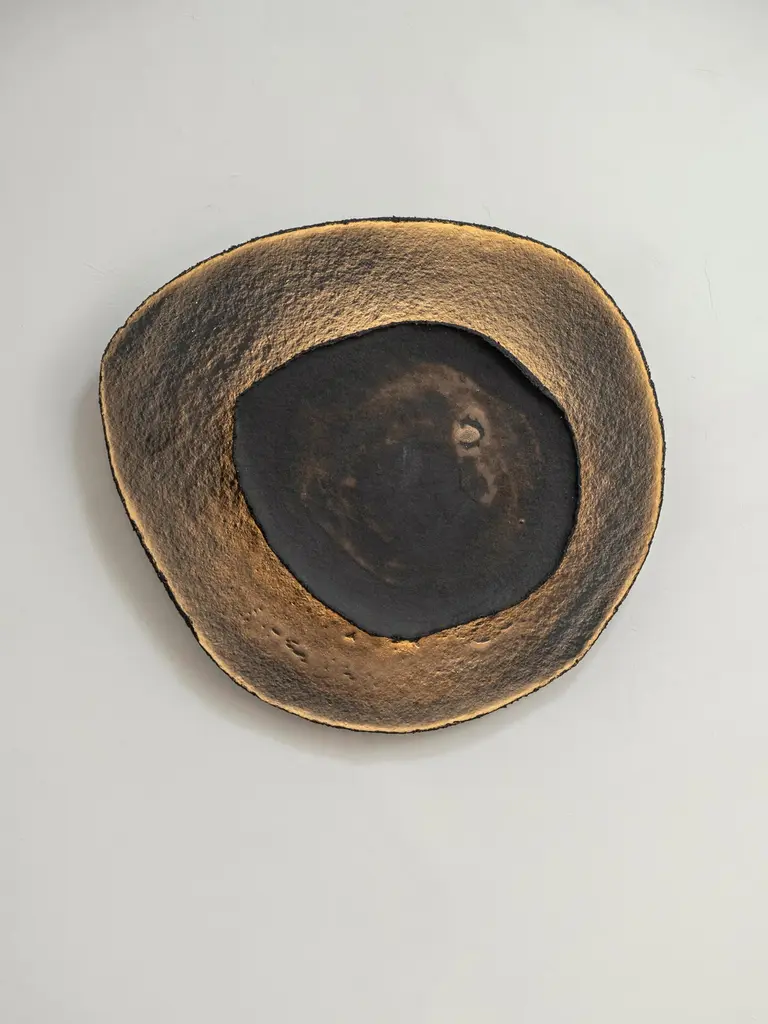 Ash #11 wall light by Margaux LeycurasOne of a Kind, Signed and numberedDimensions: Ø44 x H48 cm.Material: Ceramic, black stoneware with burnished gold glaze.The piece is signed, numbered and delivered with a certificate of authenticity.The collection of unique pieces - illuminated wall sculptures – Eclipse, was born from the combination of an exploration of the ceramic material and its limits, and a desire to create pieces which elevate the space and contribute to create an atmosphere.All our lamps can be wired according to each country. If sold to the USA it will be wired for the USA for instance.Margaux Leycuras"My ceramic workshop is located in Bordeaux, France. It is dedicated to my ceramic practice. To make my line of dinnerware and sculptures, I use various traditional building techniques; such as the potter's wheel, slab and coil building. I only use high-temperature clays such as stoneware and porcelain. These clays are fired between 1230°c and 1300°c to reach their maturity and vitrify. The practice of ceramics requires patience: you have to learn to respect the material and the different stages of making process.".