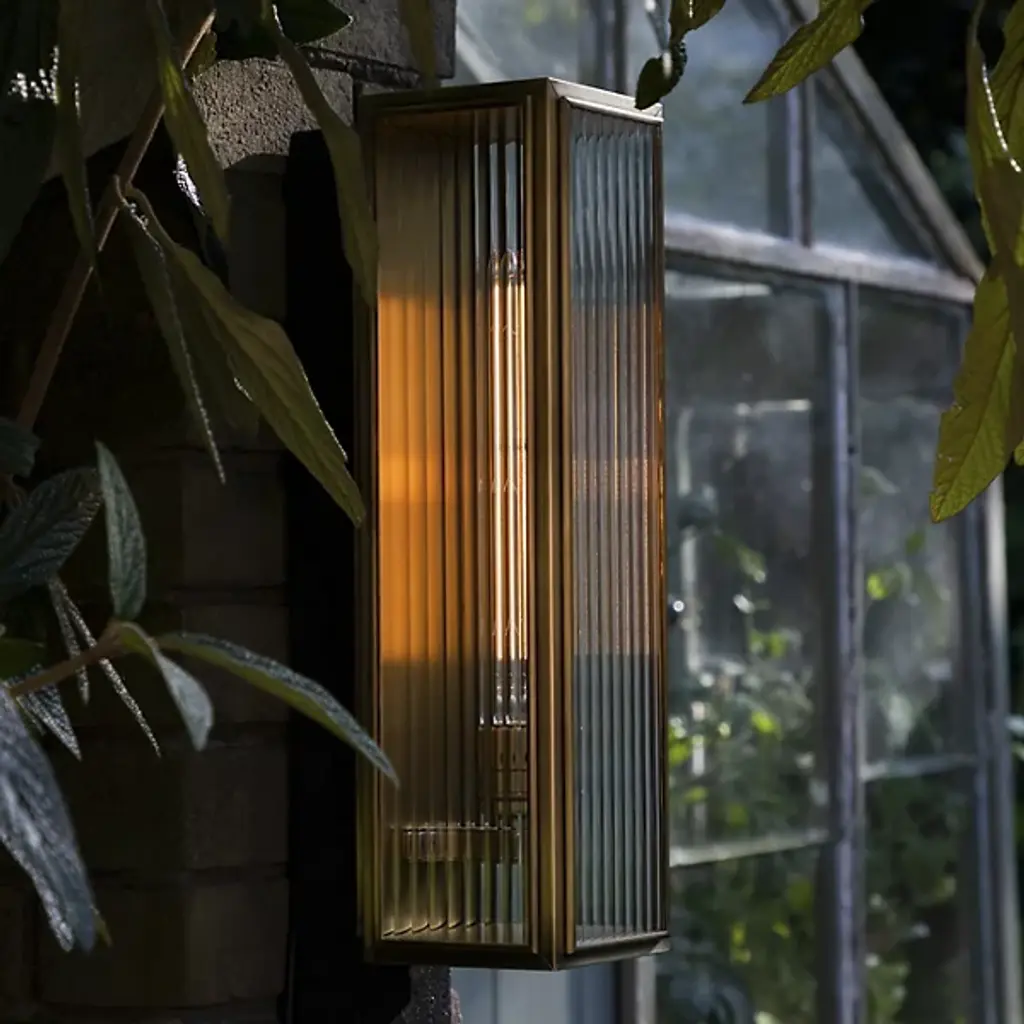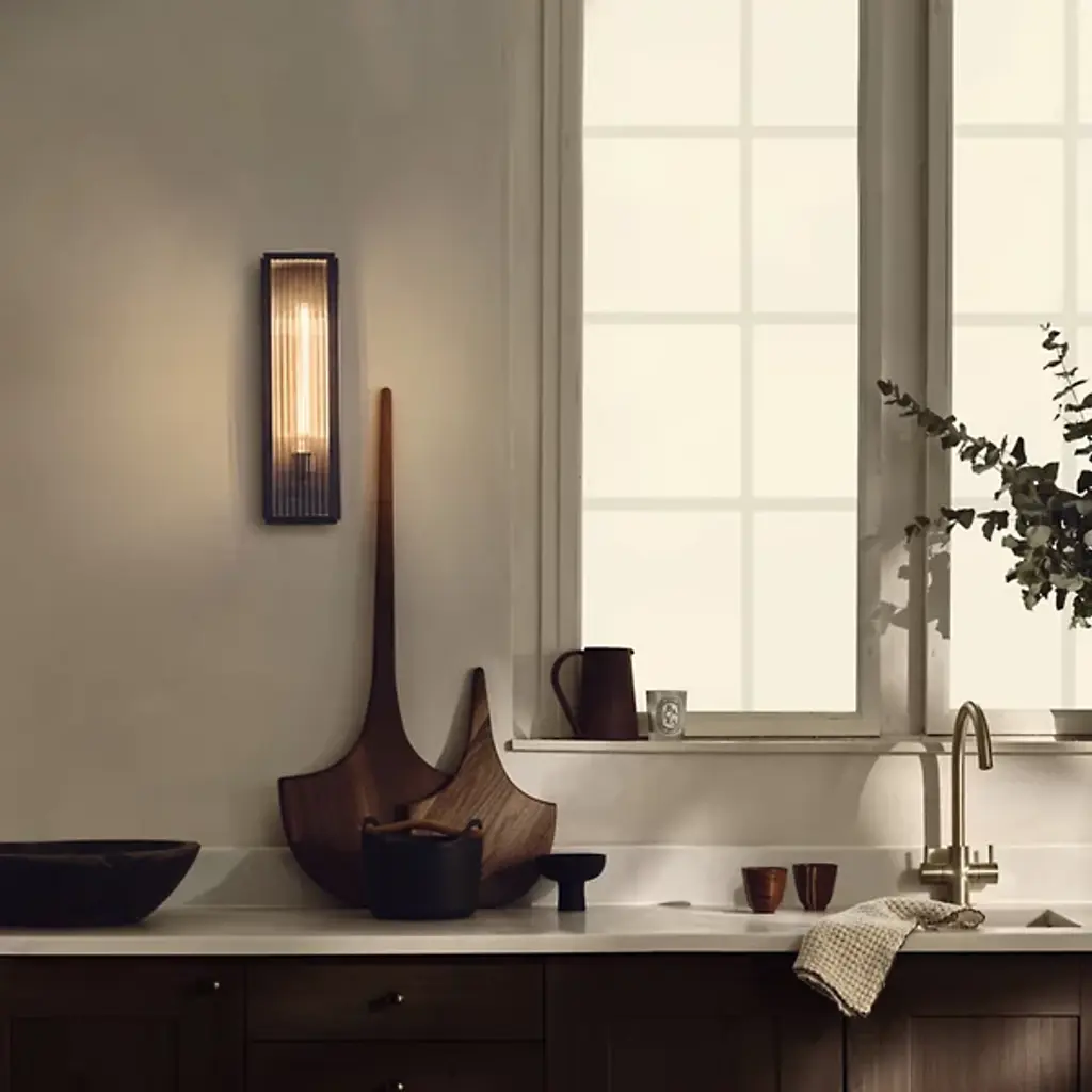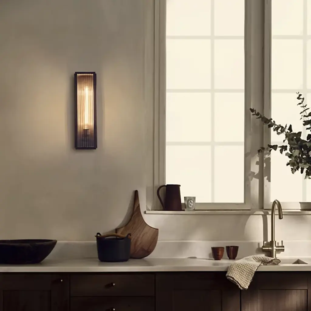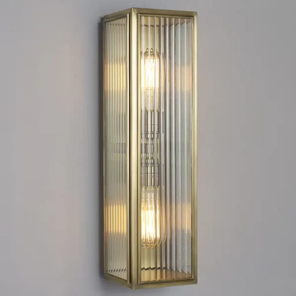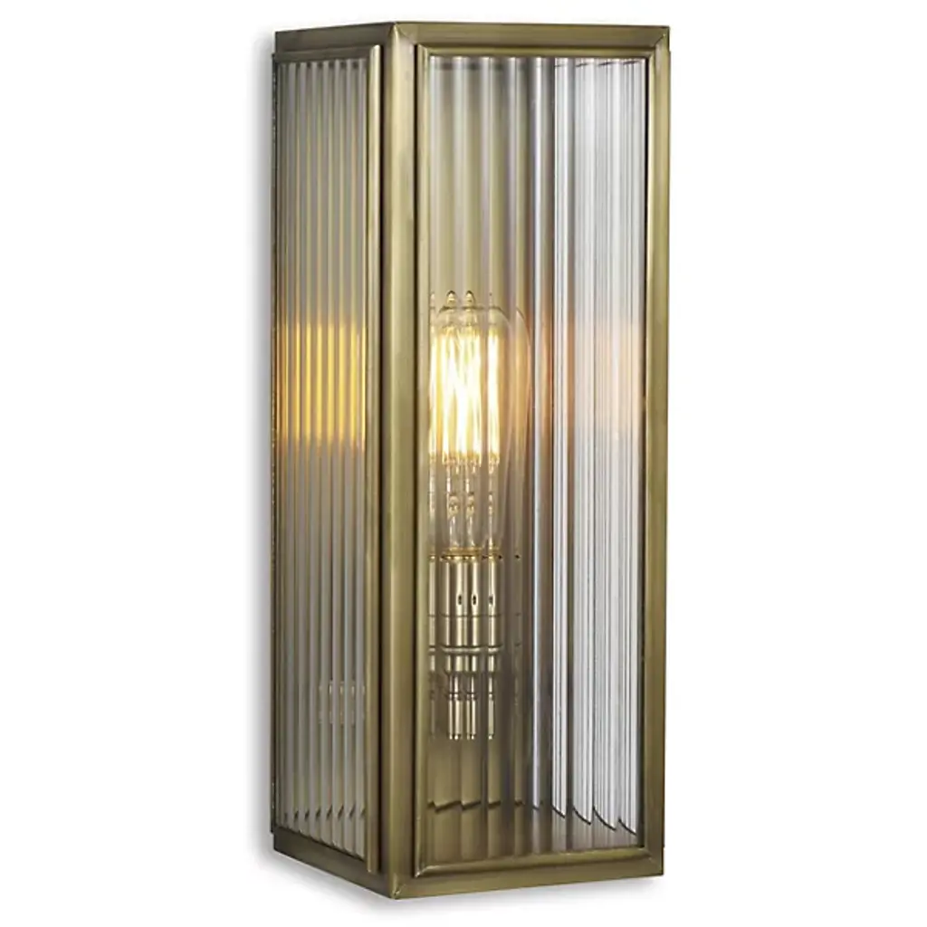 Make a decorative statement with the Ash Wall Large Sconce by J. Adams & Co. This fixture is made in the same quintessential style as its sconce counterpart in the same lighting family. A durable frame of brass supports an arrangement of glass planes. The resulting prism provides ample space for an incandescent bulb. The pleated look to the glass creates an aura of mystique for your home layout. The mood is enhanced by the wide-ranging projection of light the sconce provides. Unique to this sconce is its large size. A big glass pane allows for greater diffusion of light.