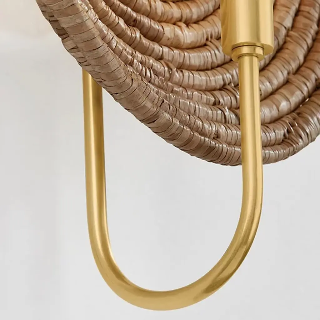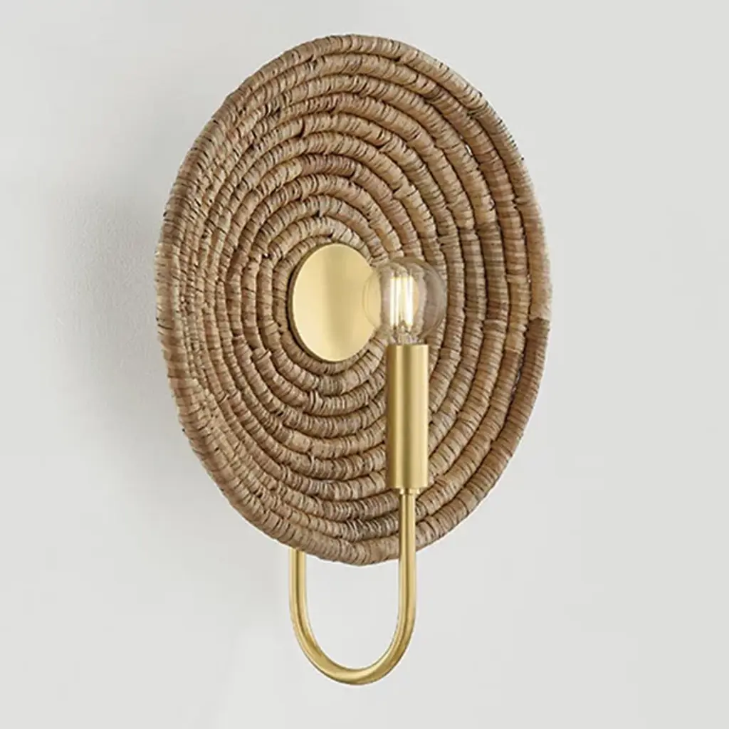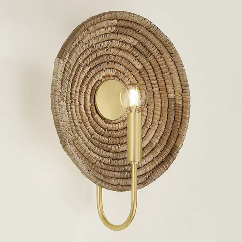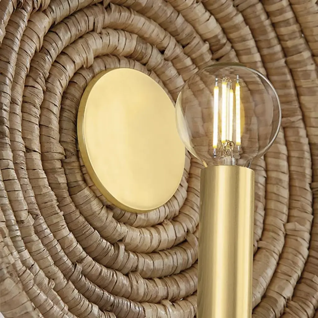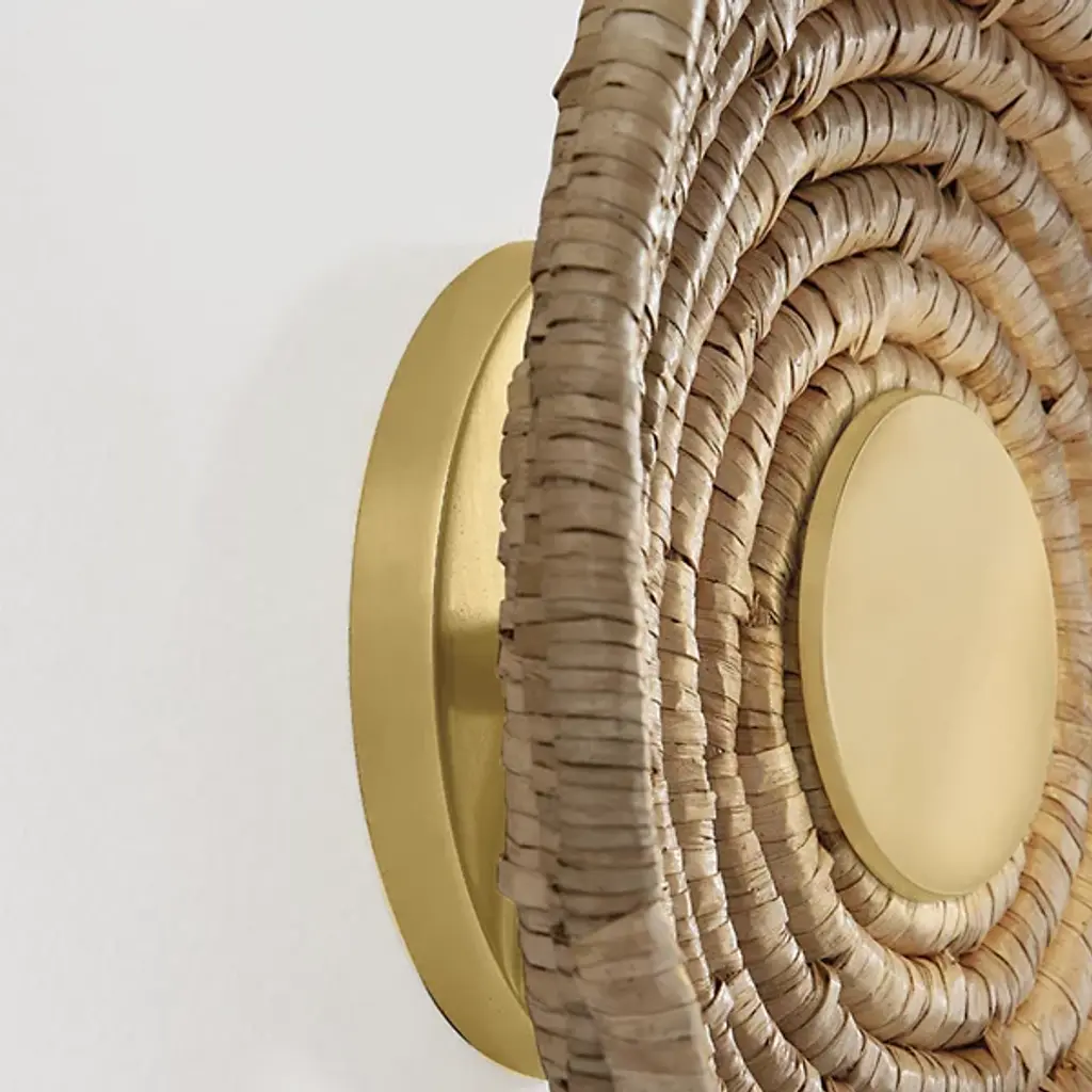 The Ashby Wall Sconce from Mitzi turns ordinary walls into artful displays with its circular woven natural fiber backdrop. Handcrafted basketry techniques create intricate patterns that frame the light source with organic texture. A carefully positioned disc reflector directs illumination outward, enhancing the piece's functionality while highlighting the precise craftsmanship. The marriage of traditional weaving methods with clean lines gives this fixture a distinctive global essence. Perfect for entryways, dining areas, or hallways, this sconce brings natural elements indoors.