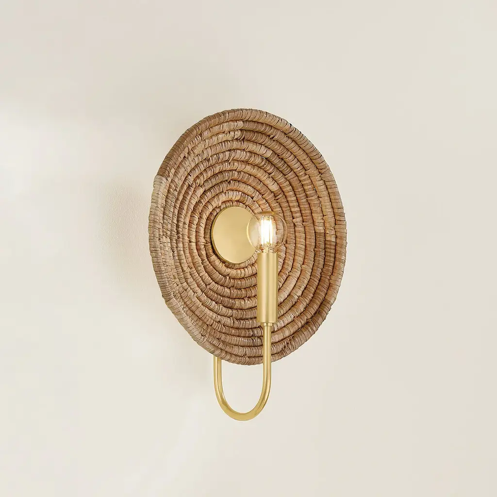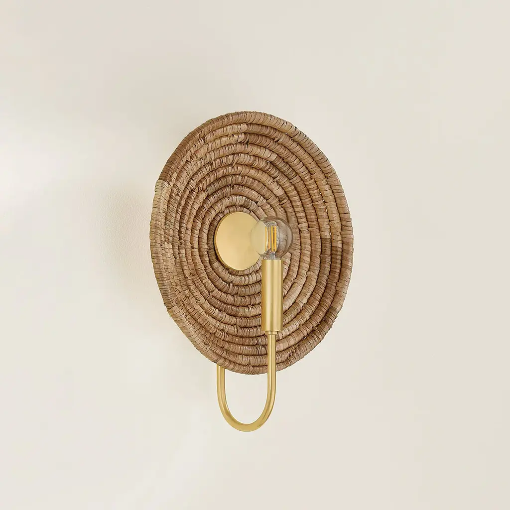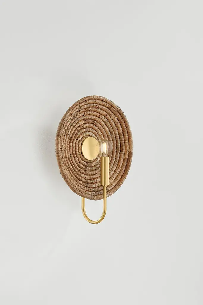 Combining tradition with innovation, Ashby’s graphic design language comes to life with circular motifs and basketry techniques. The woven forms serve as decorative backdrops for each candle, highlighting the precise craftsmanship. The Aged Brass frame includes a disc reflector to direct light outward. Available as a 1-light sconce or 4-light lantern, Ashby brings a touch of global style to modern interiors.*Due to the one-of-a-kind nature of the medium, exact colors and patterns may vary slightly from the image shown.