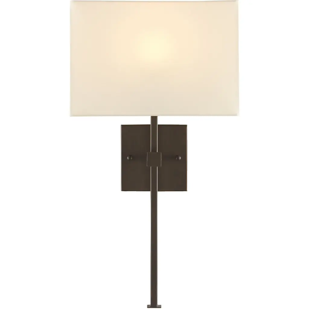 Proof that the clothes indeed make the man, we present the handsome design of the Ashdown Wall Sconce with its good-looking profile that includes a rod secured to a rectangular shade by a square ring. The bronze gold finish coupled with the champagne silk fabric of its shade are classic touches to this ensemble. The Ashdown meets ADA requirements. We also offer this fixture in silver leaf and gold leaf finishes, each of which changes its personality to gleamingly charming and warmly feminine respectively.