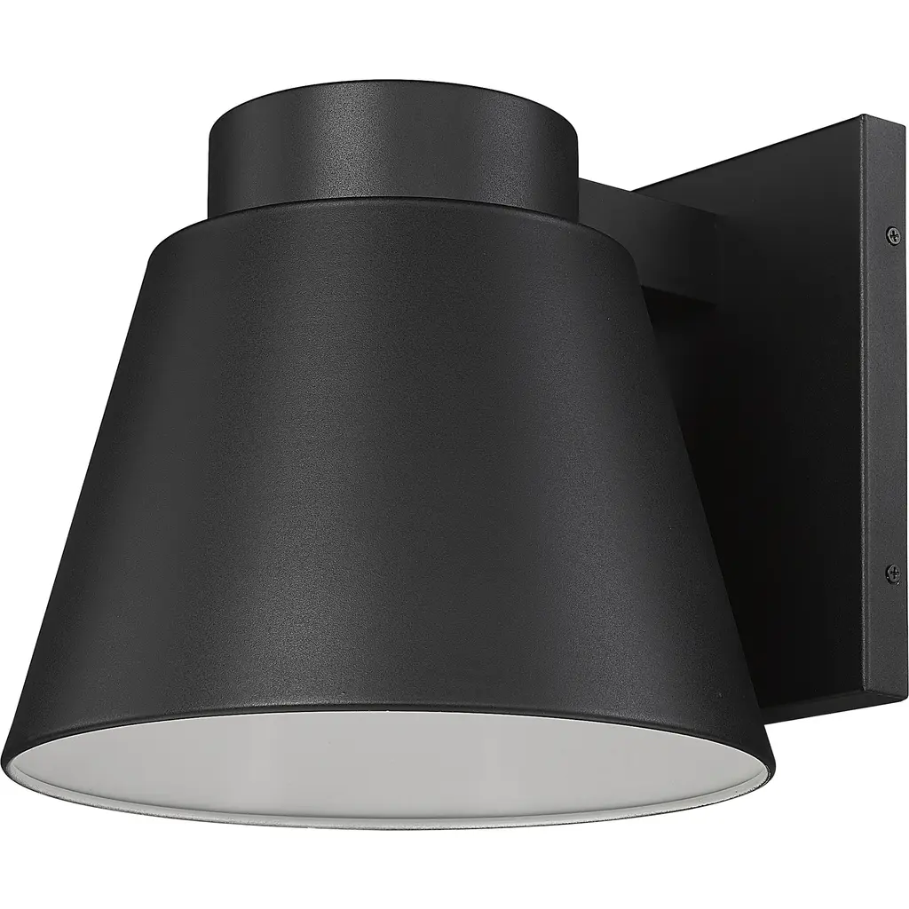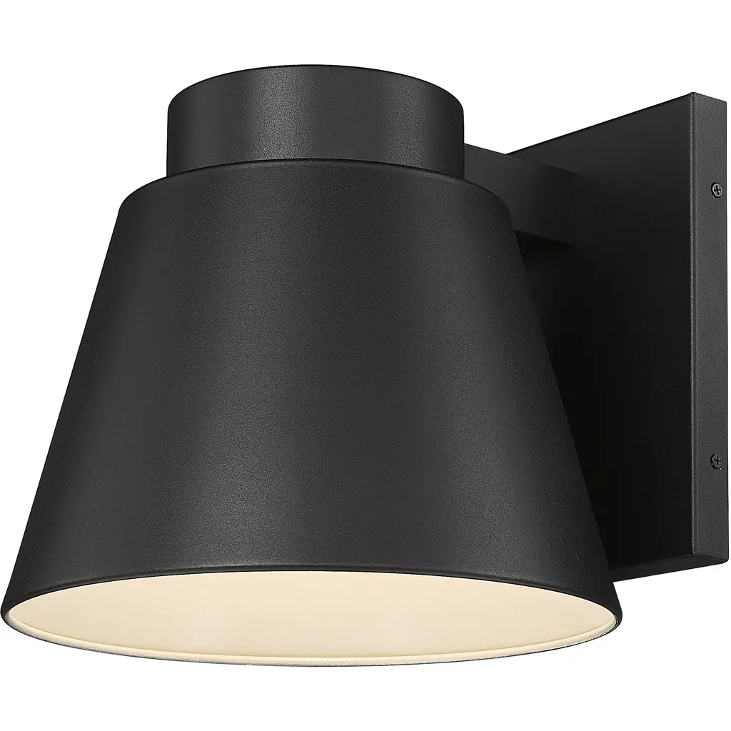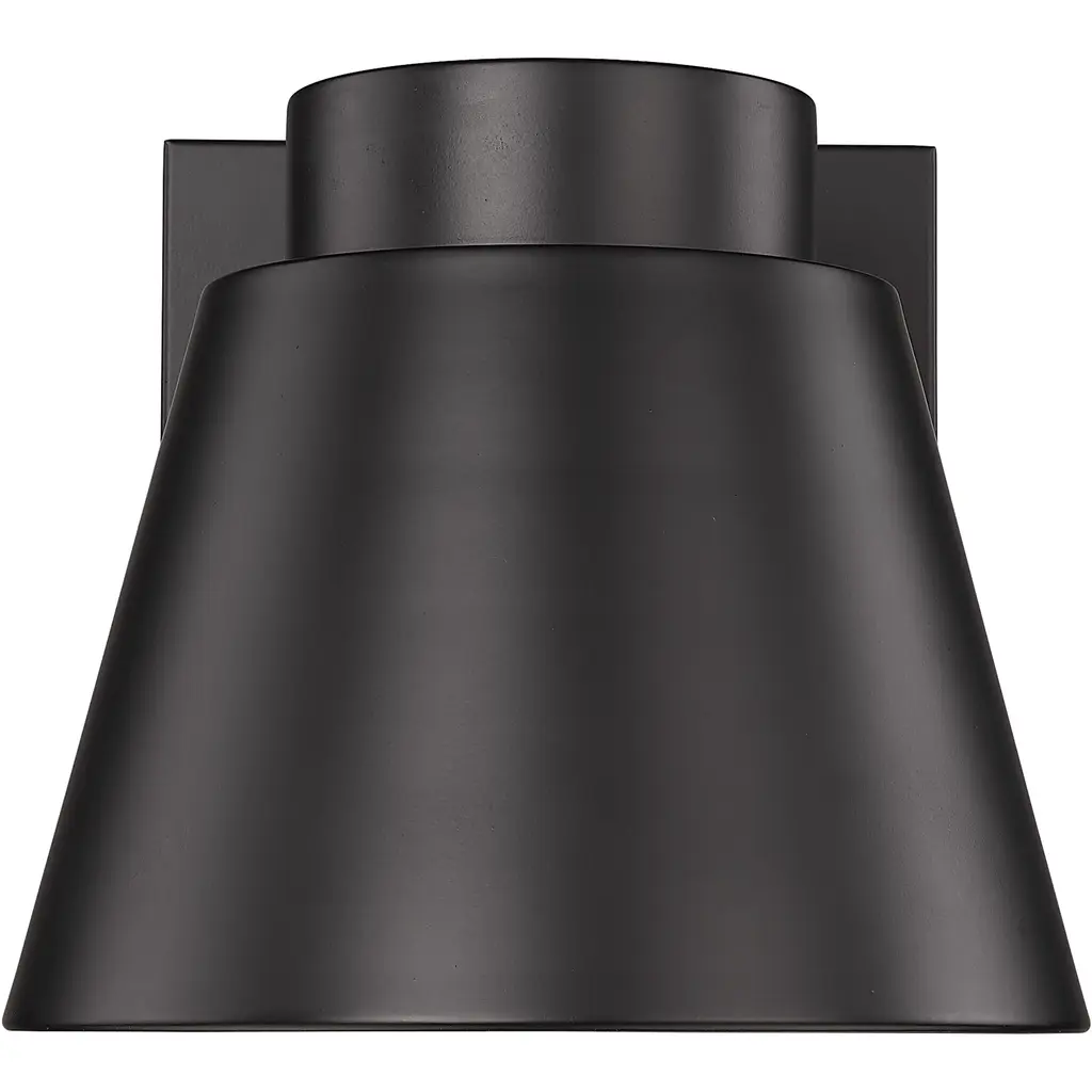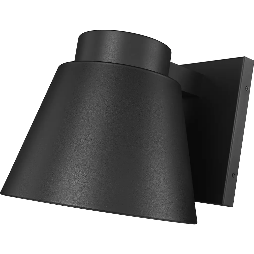 A subtle design with sleek minimalist shaping complements this one-door outdoor wall sconce. From the Asher collection, this fixture features construction of attractive black finish aluminum with a sandblast effect on its conical shade.