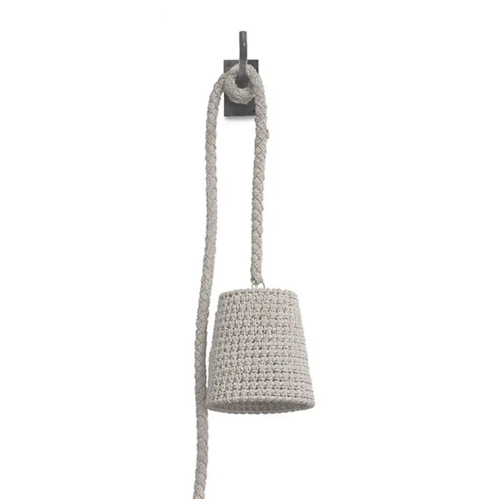 The Asilomar Outdoor Plug-In Wall Sconce from Palecek features a powder-coated metal frame meticulously hand-woven with synthetic rope for a distinctive look. A part of the Jeffrey Alan Marks Collection, this pendant includes a wall mount in an oil-rubbed bronze finish, adding a touch of elegance. Designed for covered outdoor use, it is suitable for damp locations, ensuring versatility and durability. The combination of high-quality materials and expert craftsmanship makes this piece a stylish and functional addition to any space.