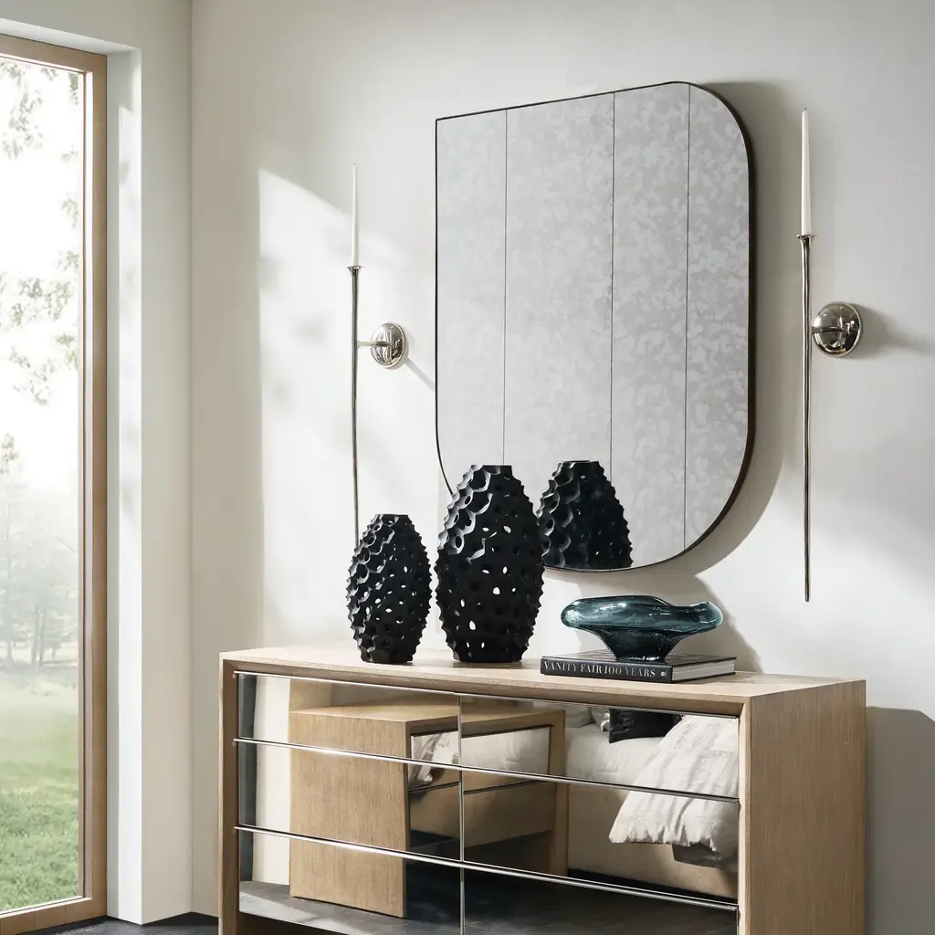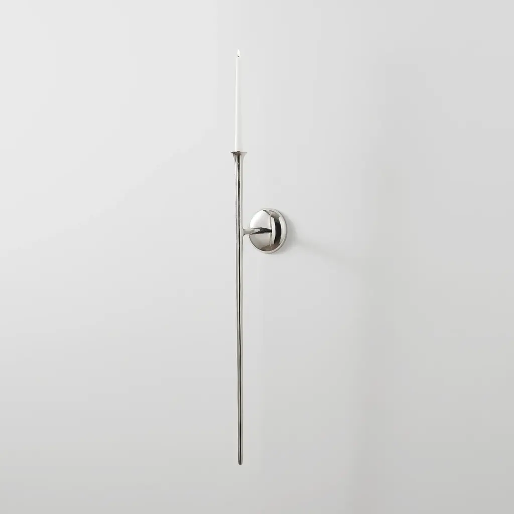 Slender and sophisticated, our Aspar Wall Sconce invites high style into your decor. This sconce is grandiose in size, hanging at an impressive 33 inches in height, making it an impressive display. To complete the look, add a taper of your choosing atop the stunning sconce for the ultimate in candlelit affairs. Stunning as a stand-alone accessory piece. Z Gallerie exclusive
