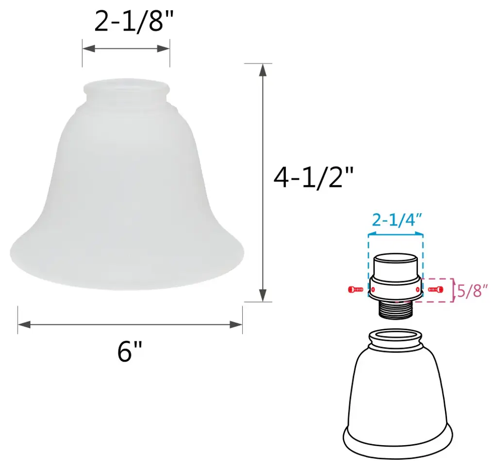 Aspen Creative is dedicated to offering a wide assortment of attractive and well-priced portable lamps, kitchen pendants, vanity wall fixtures, outdoor lighting fixtures, lamp shades, and lamp accessories. We have in-house designers that follow current trends and develop cool new products to meet those trends. Product Detail• Aspen Creative replacement bell shaped frosted glass shades, 4 pack• 2 1/4" fitter size, 4 1/2" high x 6" diameter• Replacement glass for ceiling fan light kits, bath wall fixtures and wall sconces that require a 2 1/4" fitter• Upgrade and / or change the look for your fixtures with an easy to glass change