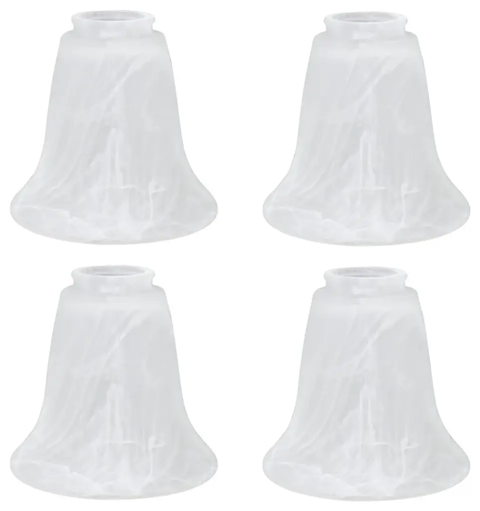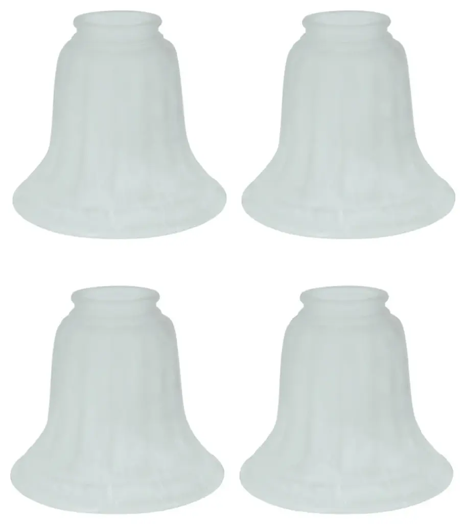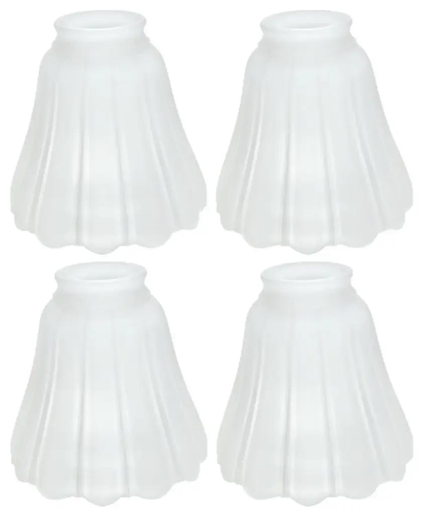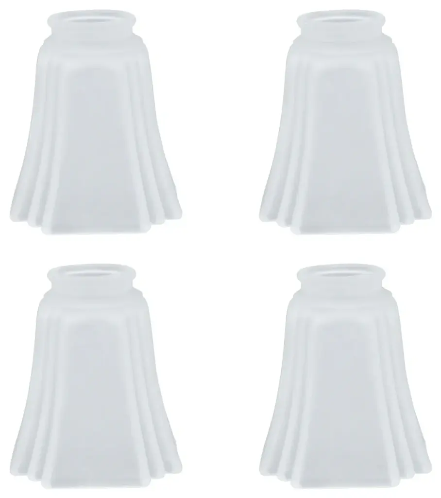 Aspen Creative is dedicated to offering a wide assortment of attractive and well-priced portable lamps, kitchen pendants, vanity wall fixtures, outdoor lighting fixtures, lamp shades, and lamp accessories. We have in-house designers that follow current trends and develop cool new products to meet those trends. Product Detail• Aspen Creative replacement frosted ribbed glass shades, 4 pack• 2 1/4" fitter size, 4 5/8" high x 4 3/4" diameter• Replacement glass for ceiling fan light kits, bath wall fixtures and wall sconces that require a 2 1/4" fitter• Upgrade and / or change the look for your fixtures with an easy to glass change