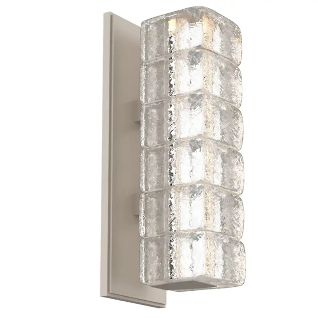 Hammerton Studio presents the Asscher LED Wall Sconce. Evoking the look of diamond jewelry, this modern wall sconce features a sleek column of symmetrical channel-set diffusers in a clear hand-cast glass. 3,000K integrated LED illumination adds intriguing sparkle. Present the Asscher as a solo piece or in multiples among locales of choice.