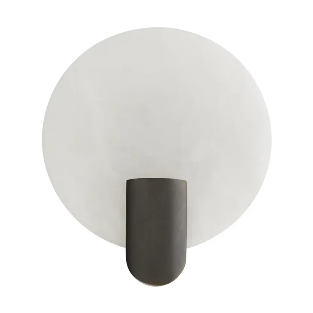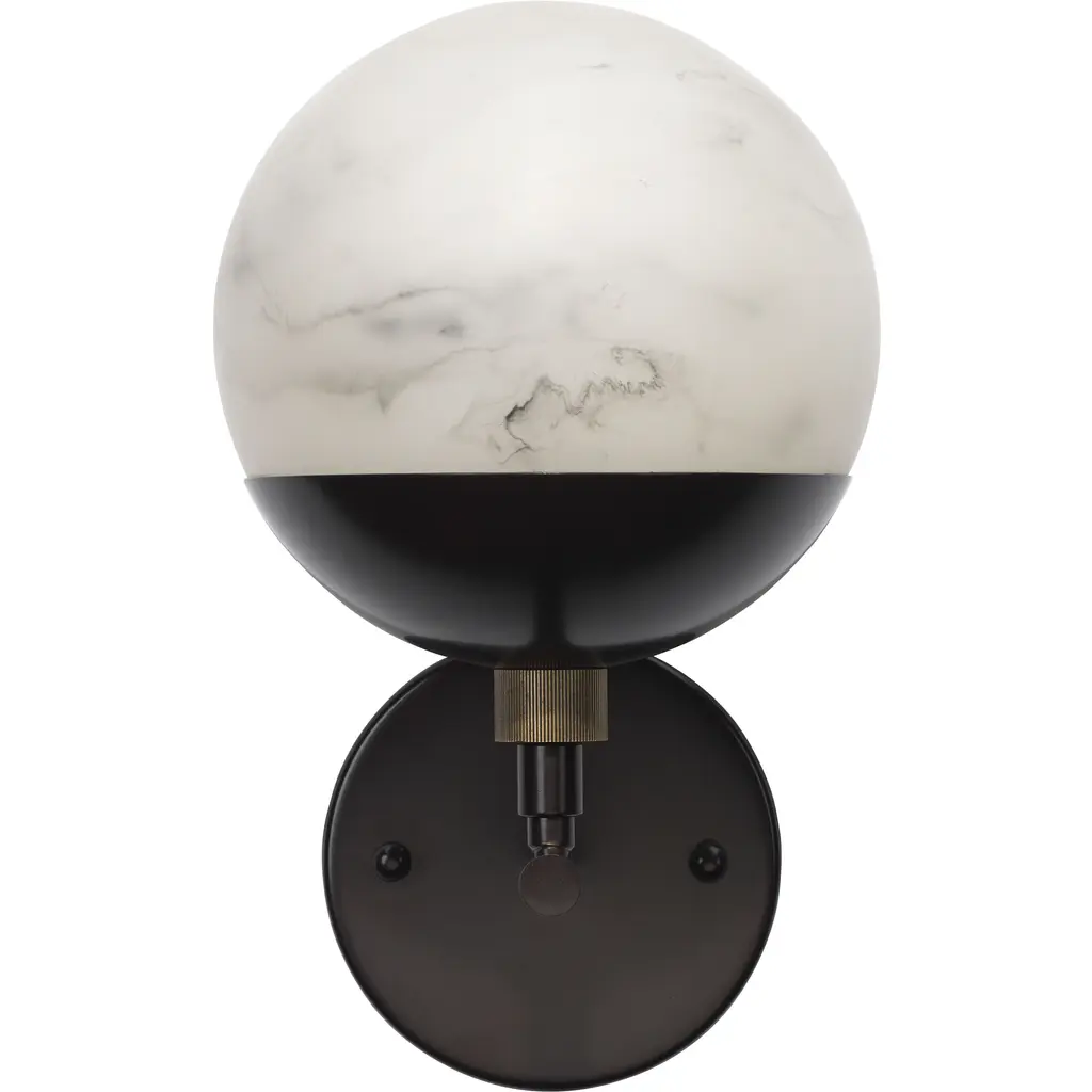 Two round pieces of Marquina black marble layer organically in this Nicholas Obeid design. Soft and sculptural with a single opaque white glass globe, wall sconce hangs like a piece of art. CB2 exclusive.
