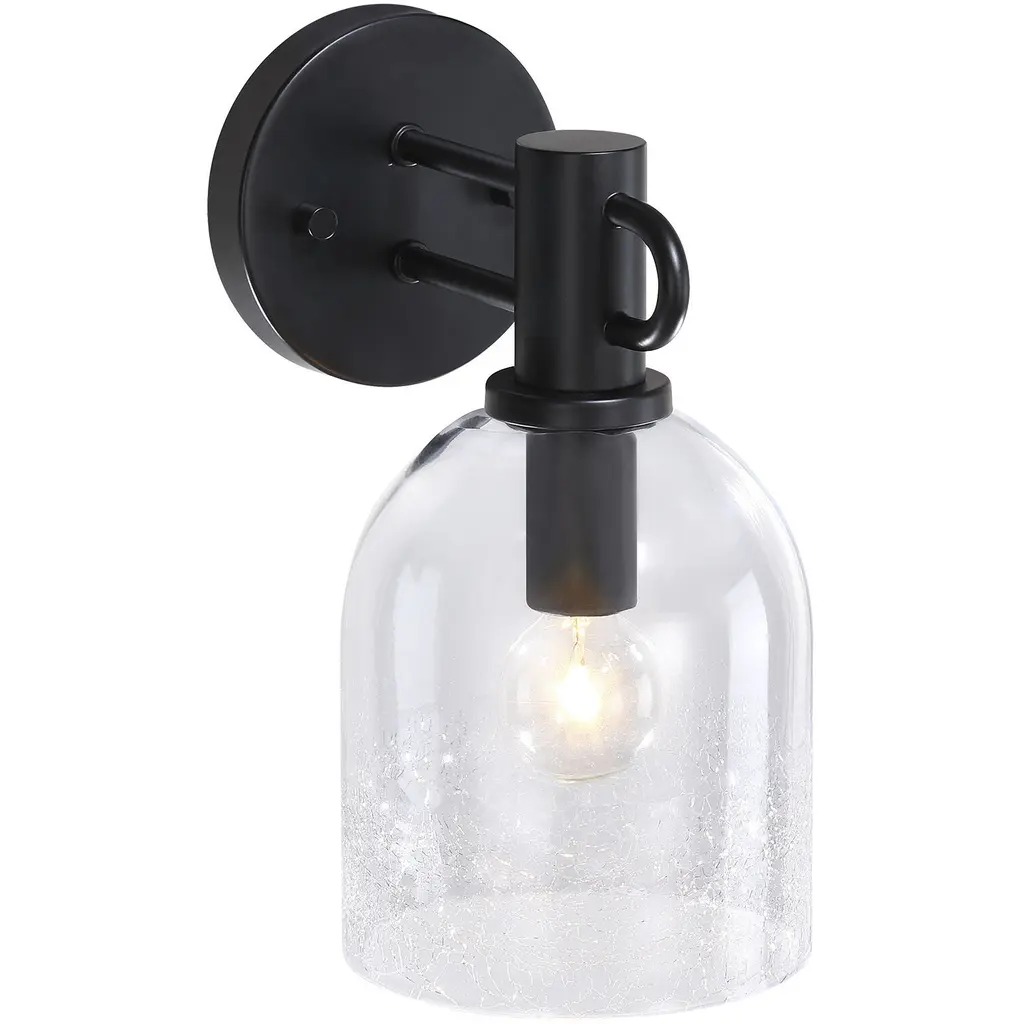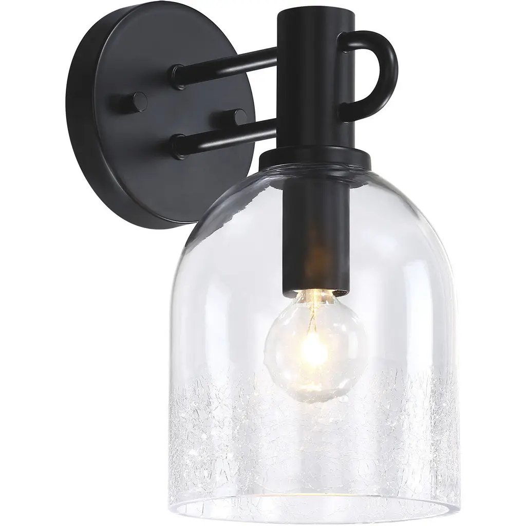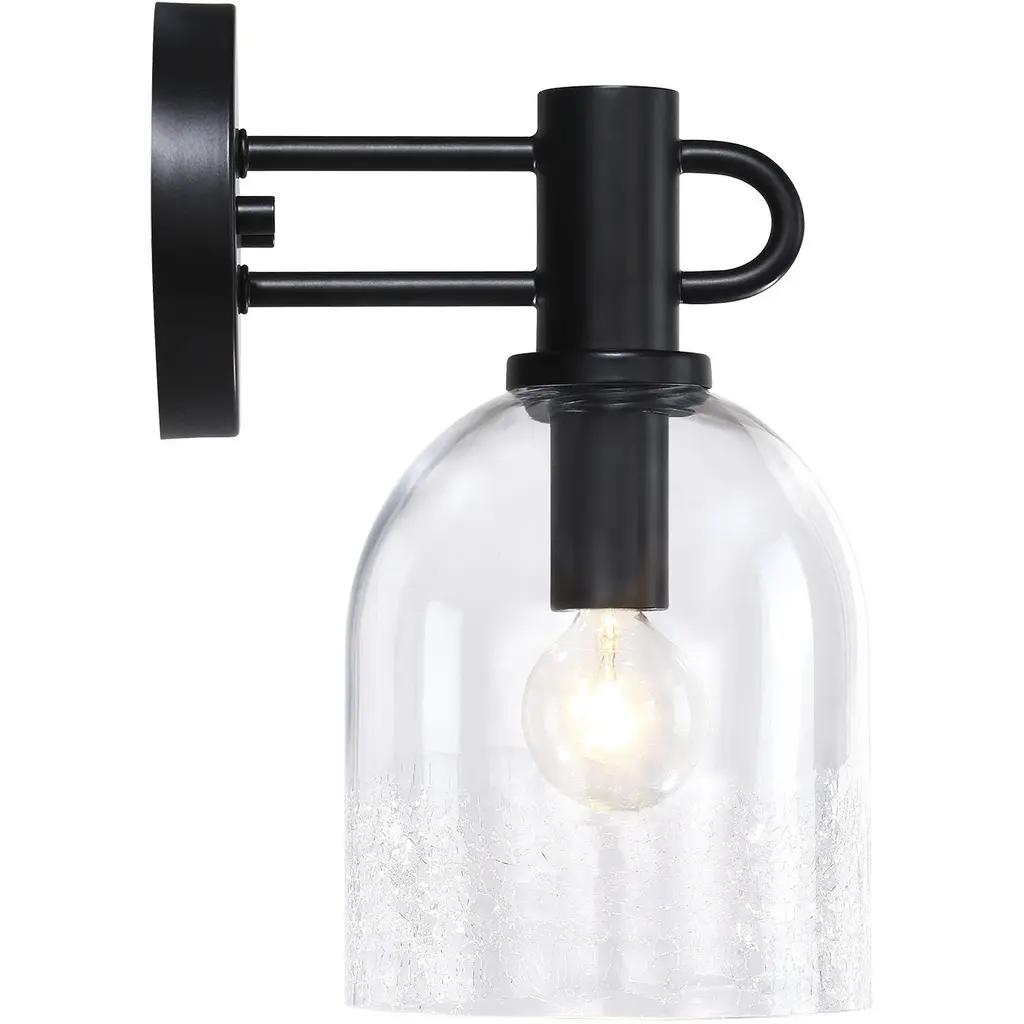 The Astra family from Designers Fountain boasts a new clear ice glass shade - similar to gradient ohmbre finishes and painting techniques. This modern and industrial family comes in a sleek matte black finish and will complement many interior design schemes and ideas. Enjoy Astra in bedrooms, bathrooms, living areas, and other spaces in your home that need some extra accent lighting. This collection is easy to install, with instructions and mounting/wiring hardware included right in the box.