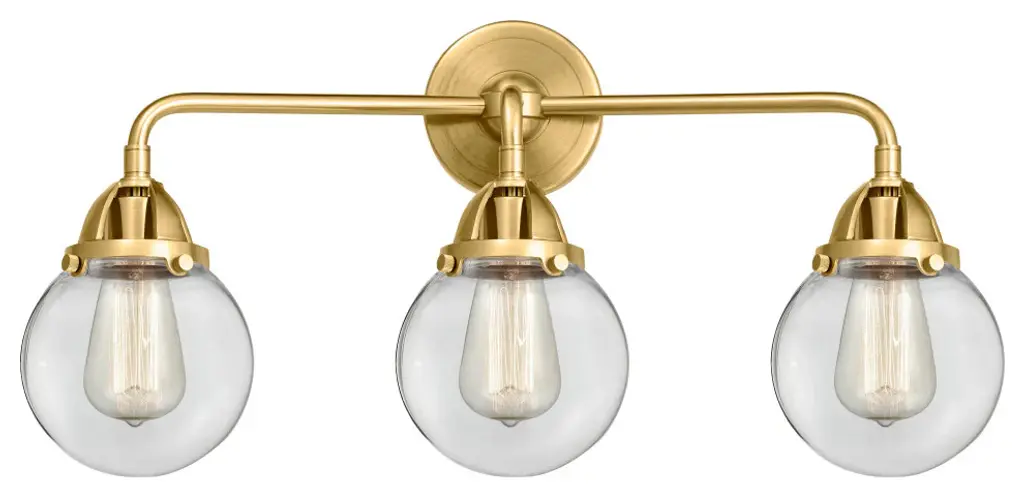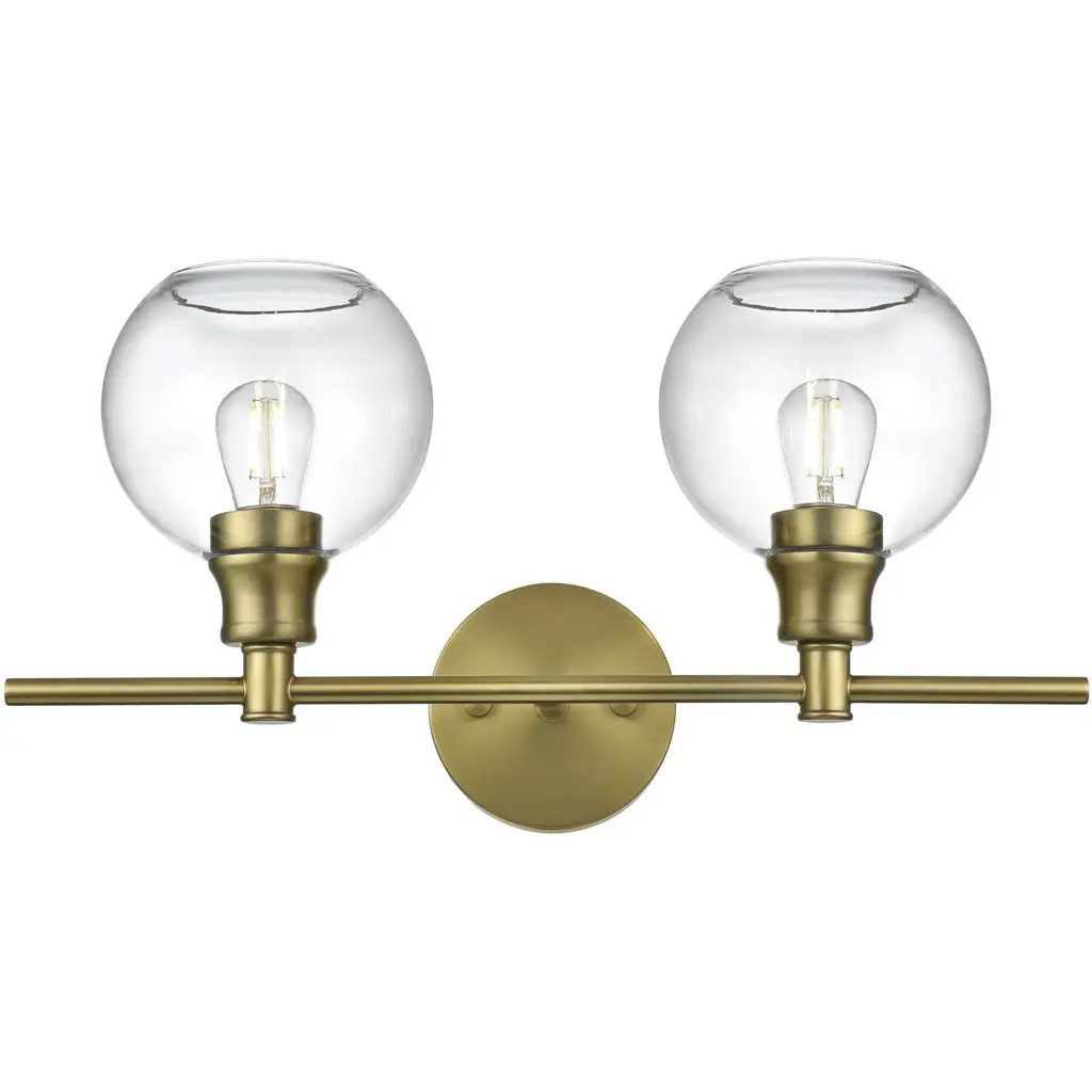 A simple and expressive piece, the Astro S06002 Wall Sconce from Huxe brings a clean and elegant silhouette to your favorite modern space. The circular wall mount extends a thin arm that splits into a longer, perpendicular rod that mounts a set of shining lamp bases and clear glass globe shades. Each shade contains a single bulb that spreads a bright glow into the space, combining for a full, even layer of illumination.