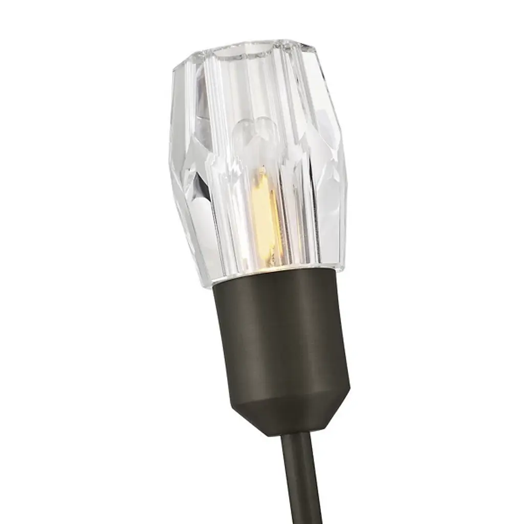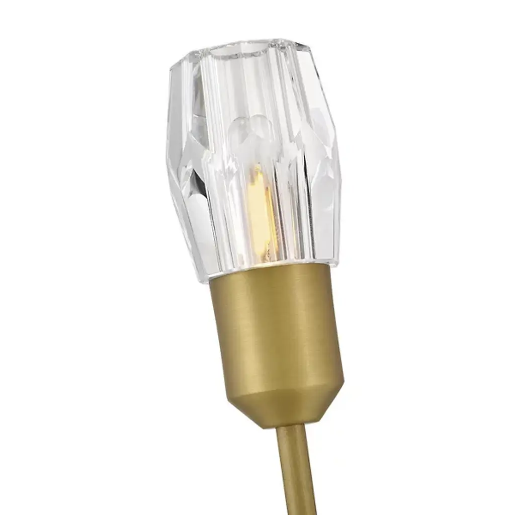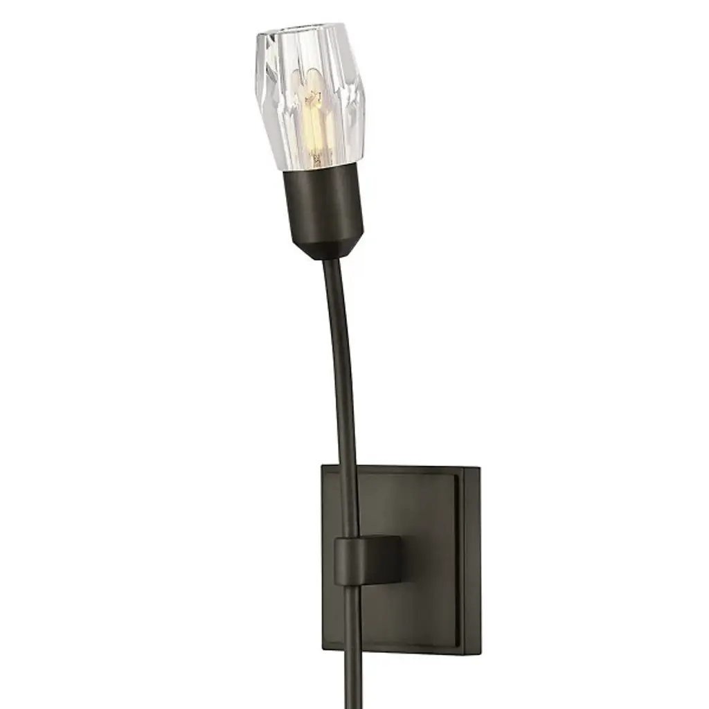 The Atera Wall Sconce from Fredrick Ramond presents a minimalist approach to crystal lighting through its singular arm design. This fixture extends outward from a clean backplate with hidden mounting hardware, culminating in a faceted crystal element that directs light upward. The interaction between the steel arm and crystal shade creates interesting shadow play against wall surfaces, adding dimensionality beyond the fixture itself. Rated for damp locations, this wall sconce brings understated luxury to bathrooms, hallways, or bedside installations with its architectural precision and carefully considered proportions.