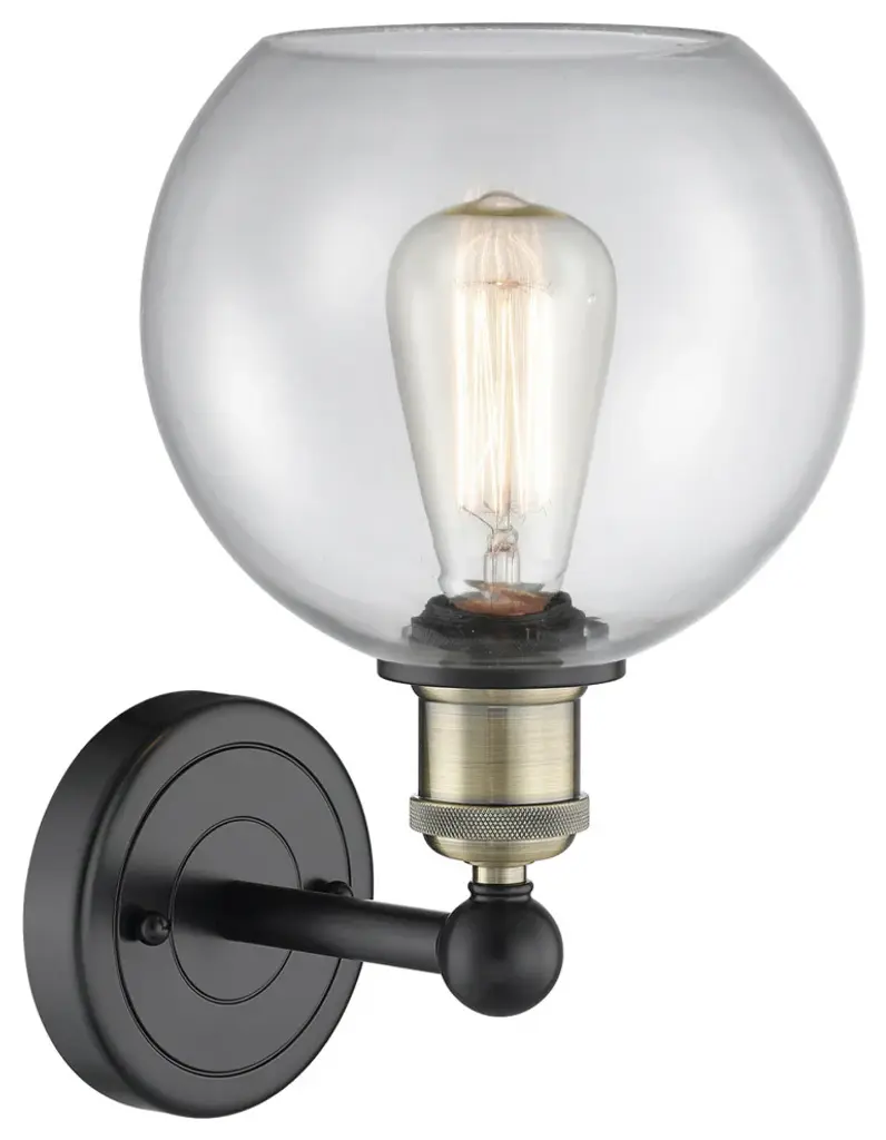 Athens 1-Light 8" Sconce, Black Antique Brass, Clear
