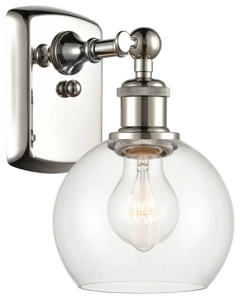 Athens 1-Light 8" Sconce, Satin Nickel, Clear