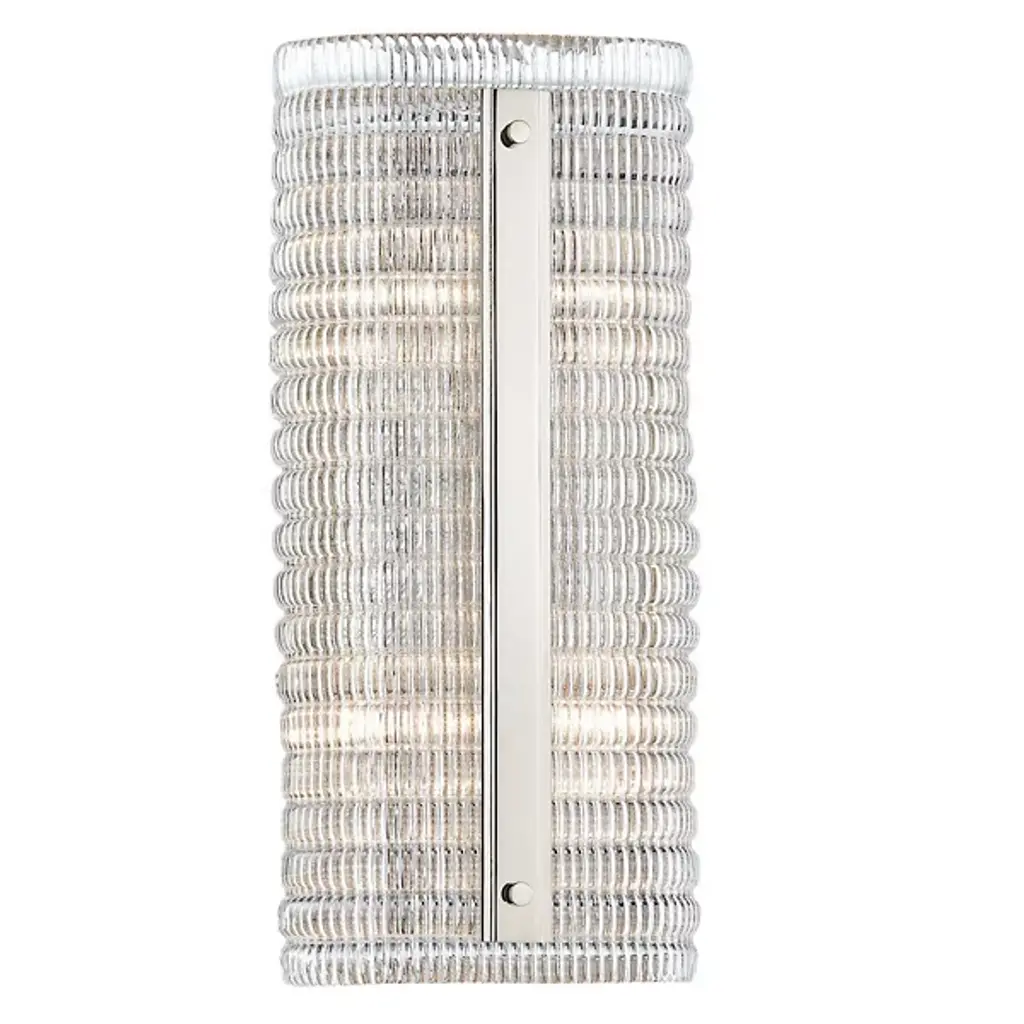 Simple yet stunning, the Athens Wall Sconce by Hudson Valley Lighting is a sleek and detailed piece. With a clear, ribbed glass shade, this fixture has a softly rounded, rectangular silhouette that is dressed up with a smooth metal bar accent with minimal grommet detailing set at the center of its form. Bringing a bold, bright, and beautiful touch to surroundings, the textured surface of this wall sconce filters a lovely layer of light onto the environment around it.
